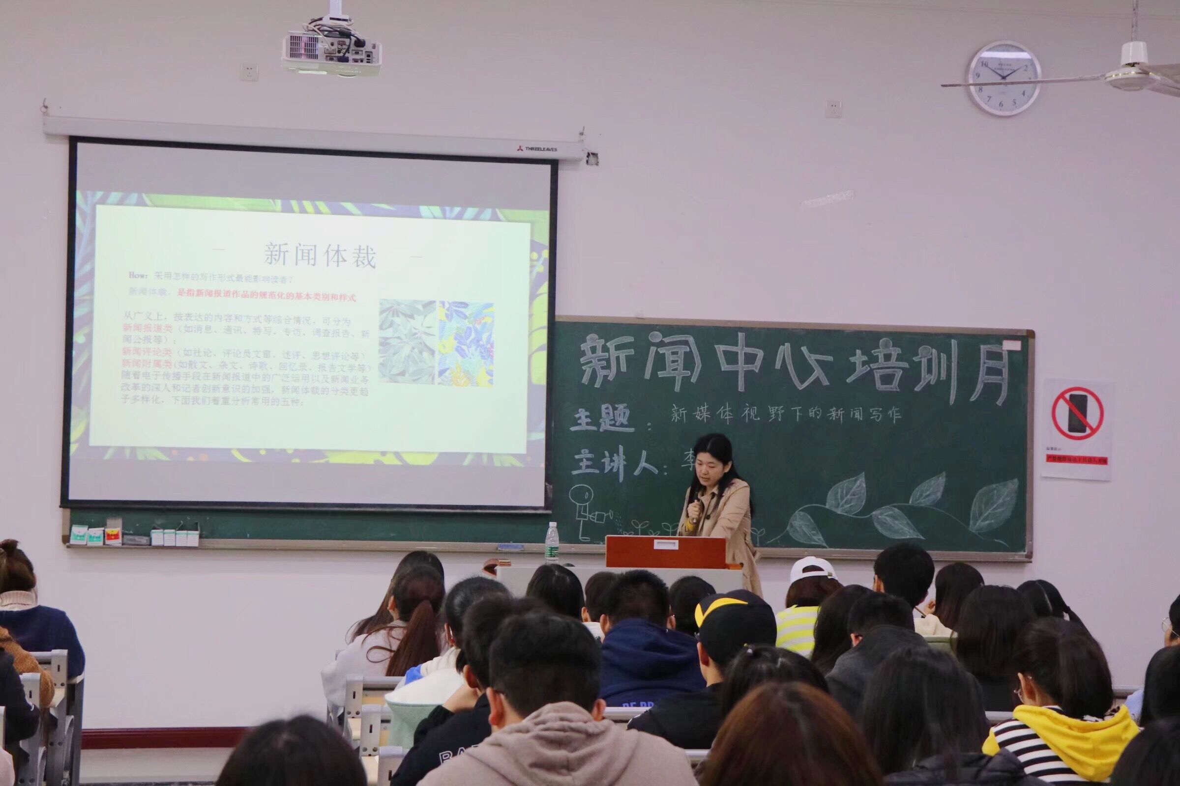 此次培训以“新媒体视野下的新闻写作”为主题开展,李敏老师着重强调了新闻稿的基本写作要求、写作技巧以及新闻稿写作形式,加强了同学们对新闻稿的基本认知。