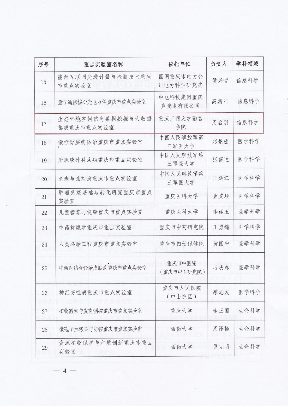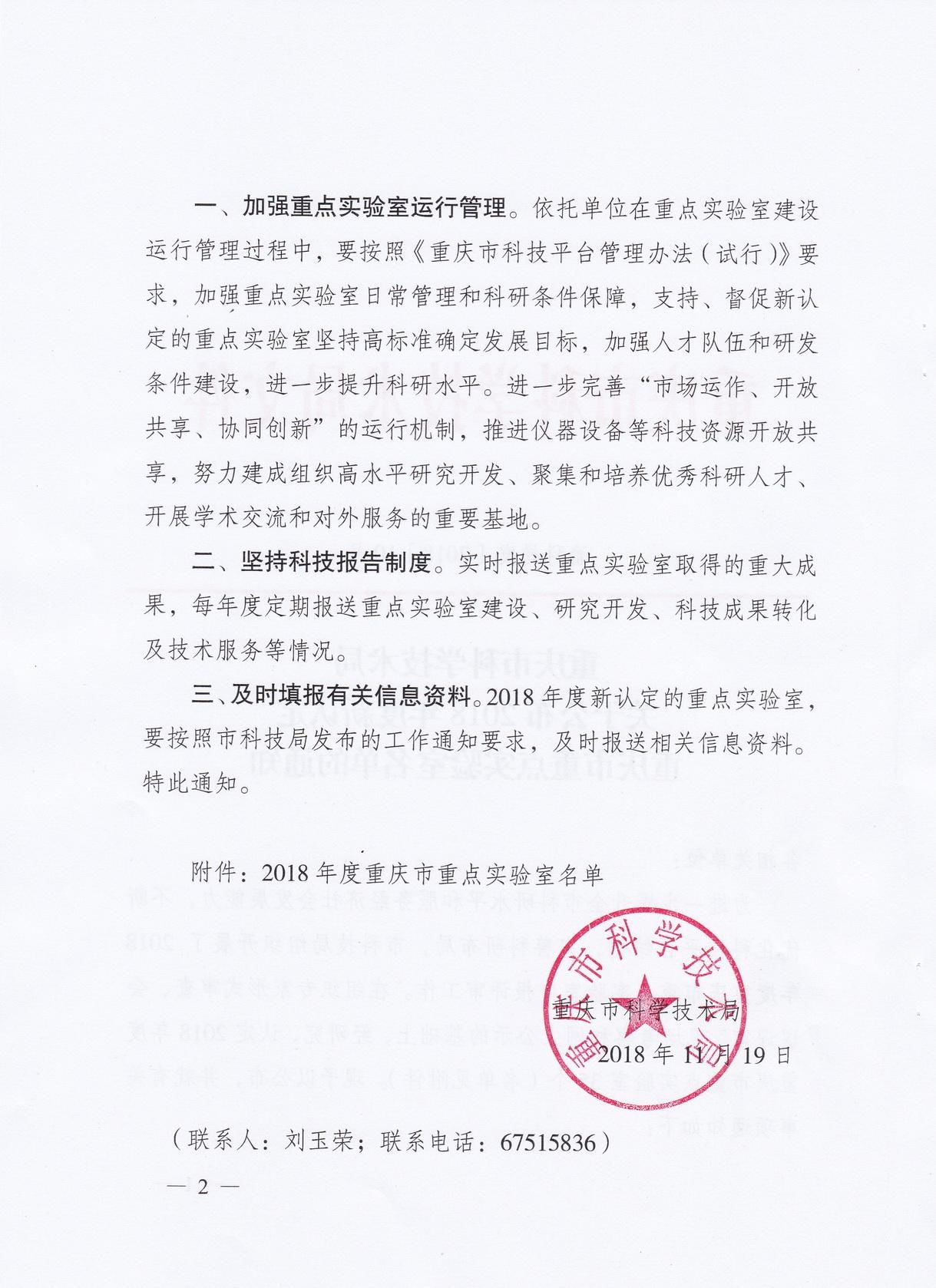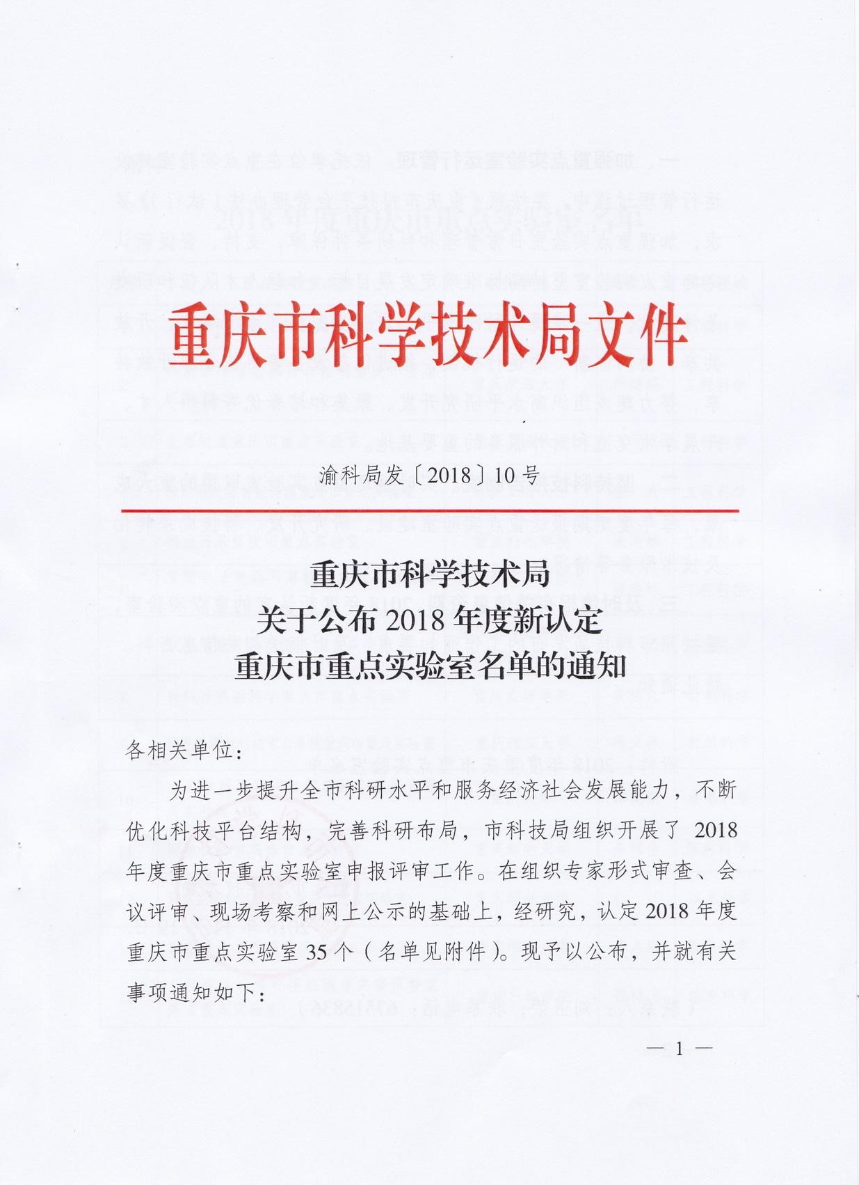 附件:重庆市科学技术局关于公布2018年度新认定重庆市重点实验室名单的通知