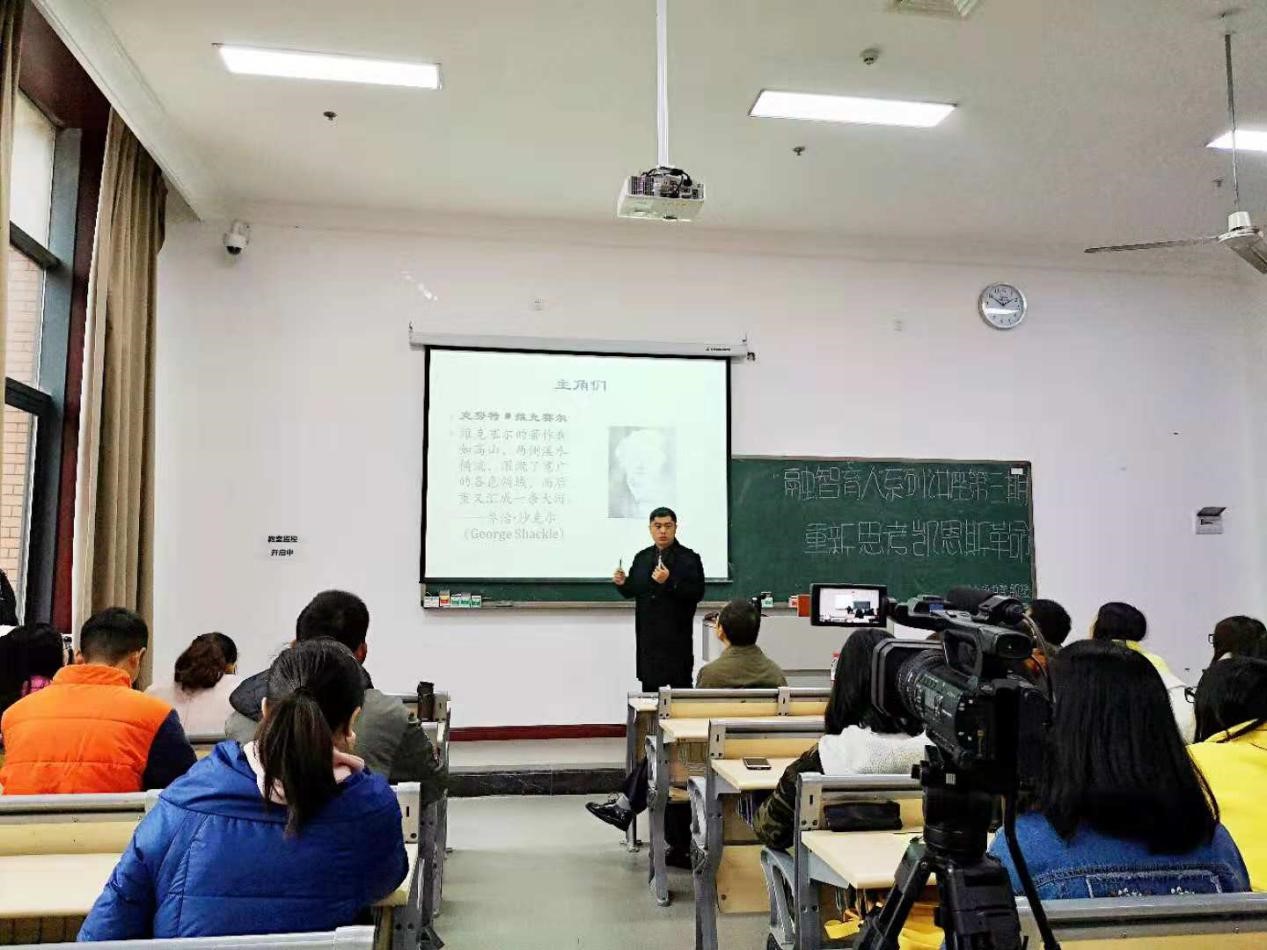 李井奎教授上午的讲座“重新思考凯恩斯革命”主要围绕以下几个论题展开:一、1930年代的经济学界大战;二、维克赛尔联系;三、哈耶克论凯恩斯;四、凯恩斯论哈耶克;五、斯拉法论哈耶克;六、《通论》与哈耶克;七、重新思考凯恩斯革命。首先李井奎教授为现场的师生介绍自己研究凯恩斯理论的缘由,他发现在国内缺少对对凯恩斯理论的研究,这个缺口的弥补将有功千秋万代,正是这种信念支撑着他计划用十年的时间翻译凯恩斯著作,至今已翻译完成七本;其次,利用其雄厚的读书功底,将与凯恩斯相关的零散知识碎片组织成一张网,其中提到宏观经济学核心问题是短期波动与长期经济增长之间的协调问题,而协调机制是利率;凯恩斯与哈耶克三个回合大战,以通俗易懂、生动的语言精彩的呈现给现场的师生,并在讲述的过程中还推荐了相关知识的经典阅读书籍,为师生今后的阅读开辟了捷径;最后,与现场师生互动,讲座人与听众互问互答,相映成趣。