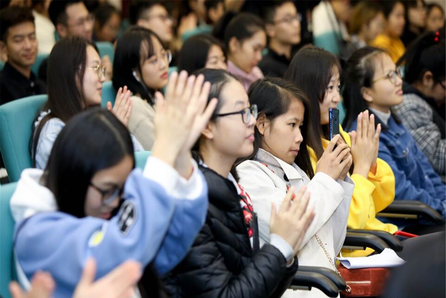 在提问环节,同学们积极的与田艺苗老师进行互动,她耐心的回答了同学们的问题,并为提问的同学送出了精美的礼物。