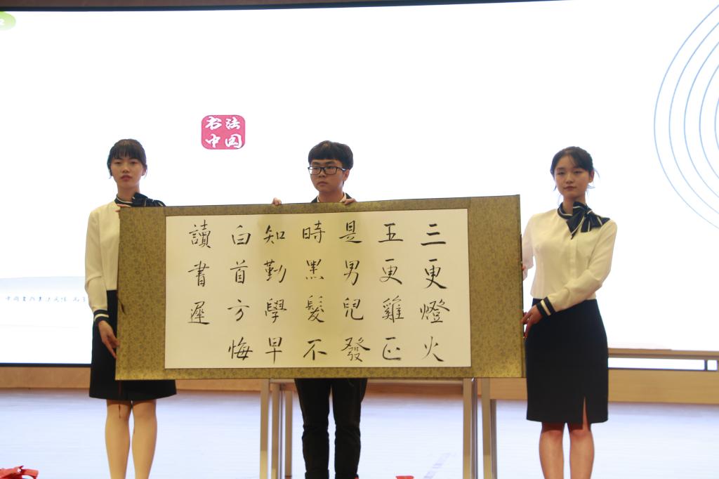 在才艺展示比赛中,参赛选手们个个身怀绝技、多才多艺,用歌舞、朗诵、小品、书法等方式彰显新时代大学生的青春风采与朝气。选手们的才艺不仅非常符合时代主题,而且创意新颖,如合唱《平凡之路》,选手用优美动听的歌声诉说出平凡的伟大,平凡的生命也是可贵的;书法展《劝学》,选手用工整的楷书字体写下勉励青年学生的话语“三更灯火五更鸡,正是男儿读书时,黑发不知勤学早,白首方悔读书迟。”此次德育活动系列的才艺展示不仅展现我校学生的青春风采与魅力,更是展现了在新时代下我校学生对青年责任与担当的清晰意识。