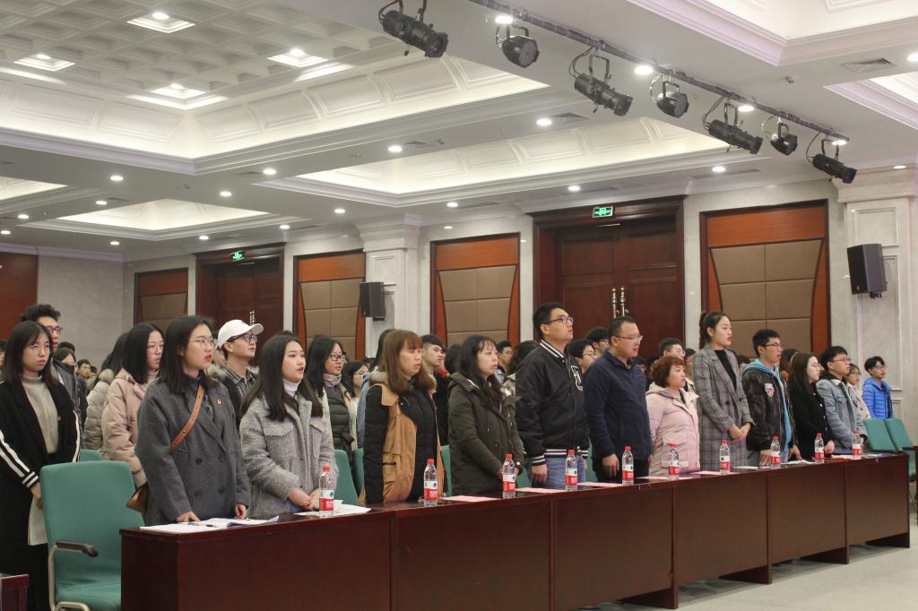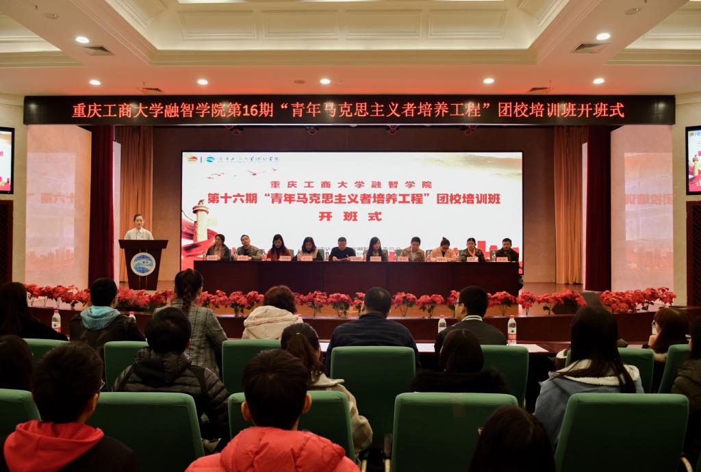 (通讯员 何月英)为进一步加大对团员青年、团干部的培养,2018年11月29日中午12:00,我校第十六期“青马工程”团校菁英培训班开班仪式暨团校培训第一讲在学术报告厅顺利举行,共计340余名学员参加本期团校培训。出席本次开班仪式的领导有重庆工商大学融智学院党委陈龙国副书记、党群工作部倪倩茜部长、思政部常晓薇主任、学生处唐川川处长、团委李刚书记、金融学院党总支陈萍副书记、会计学院党总支姚转花副书记、物流工程学院党总支李喆副书记、商务学院党总支宋湘琴副书记、经济学院党总支乐晓勇副书记。