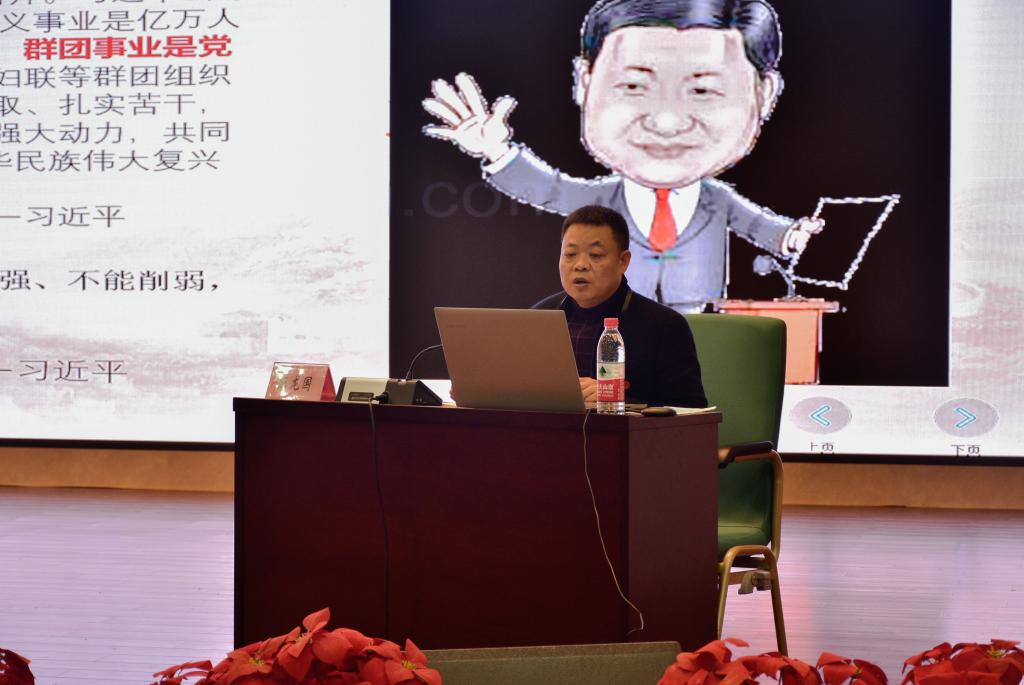 开班仪式结束,第一讲正式开始。陈国龙副书记从共青团群众工作的基本内涵和基本方法两方面为我们讲述了新形势下的共青团干部如何做好青年群众工作,要求我们应承担起引导群众听党说,跟党走的政治任务,学会“情理交融”的处事方法,让群众和党的联系更紧密。通过这场讲座,让各位学生干部更加认清了自己的本职工作,以后能够再接再厉,做好各项工作。