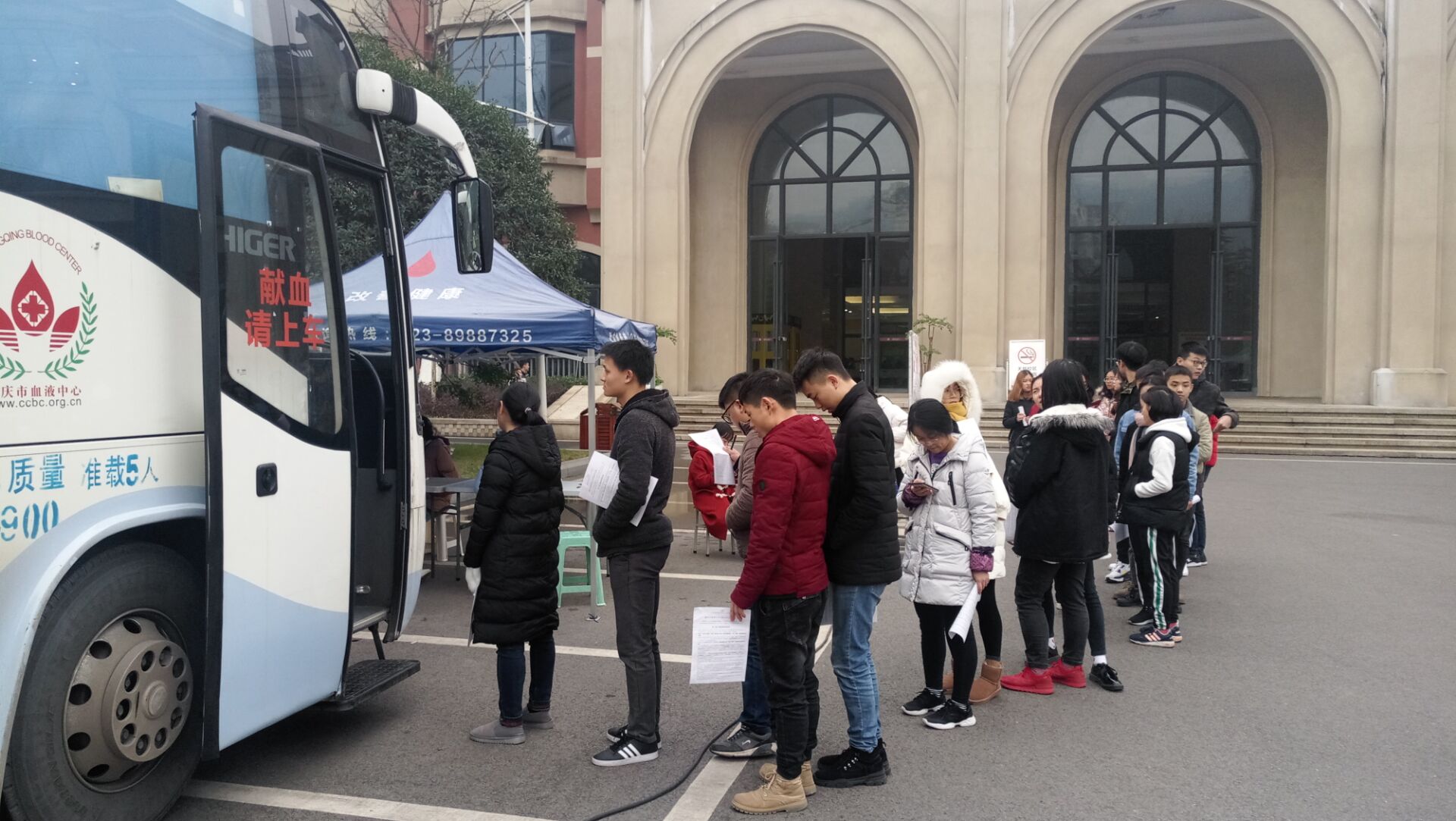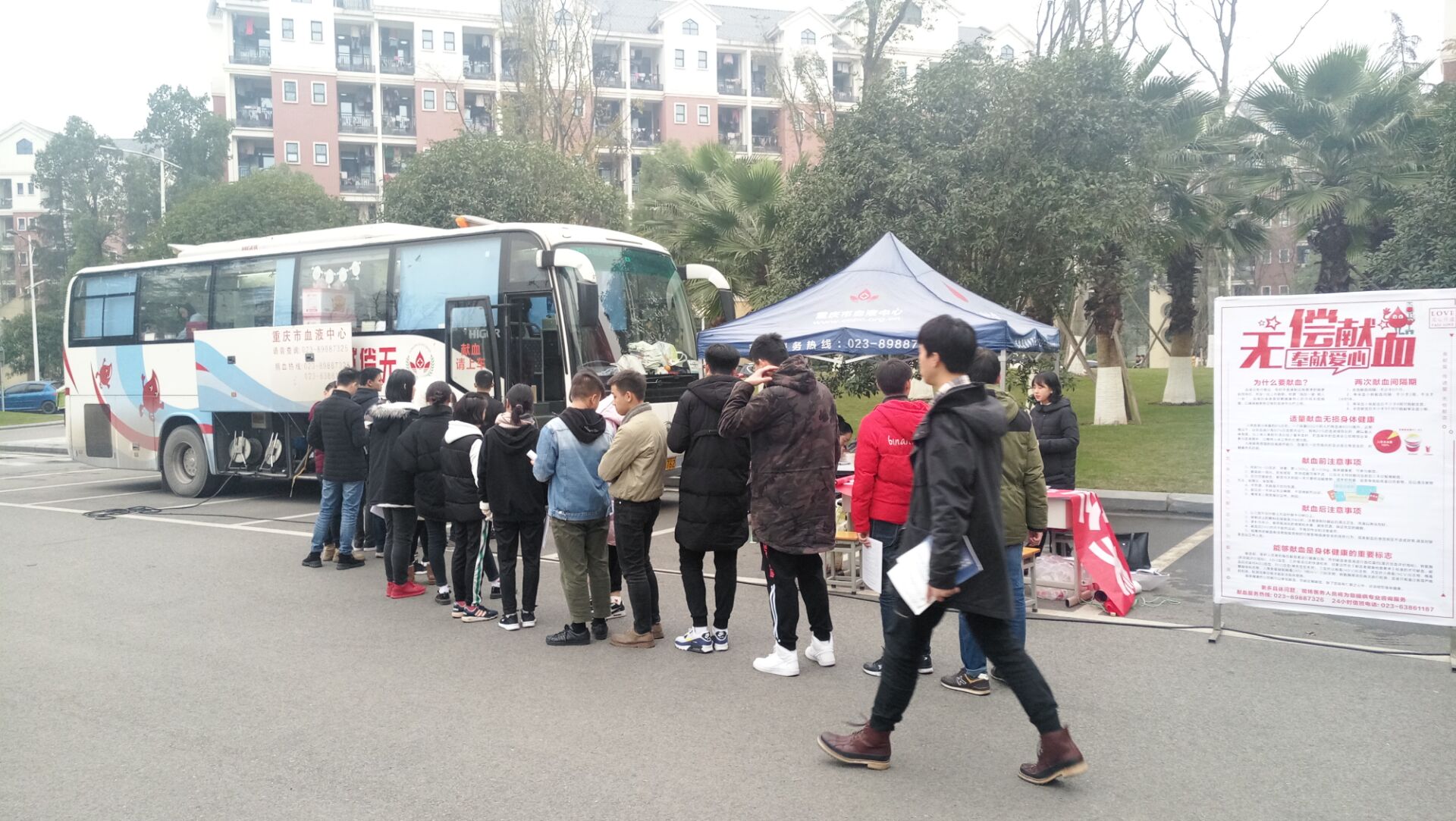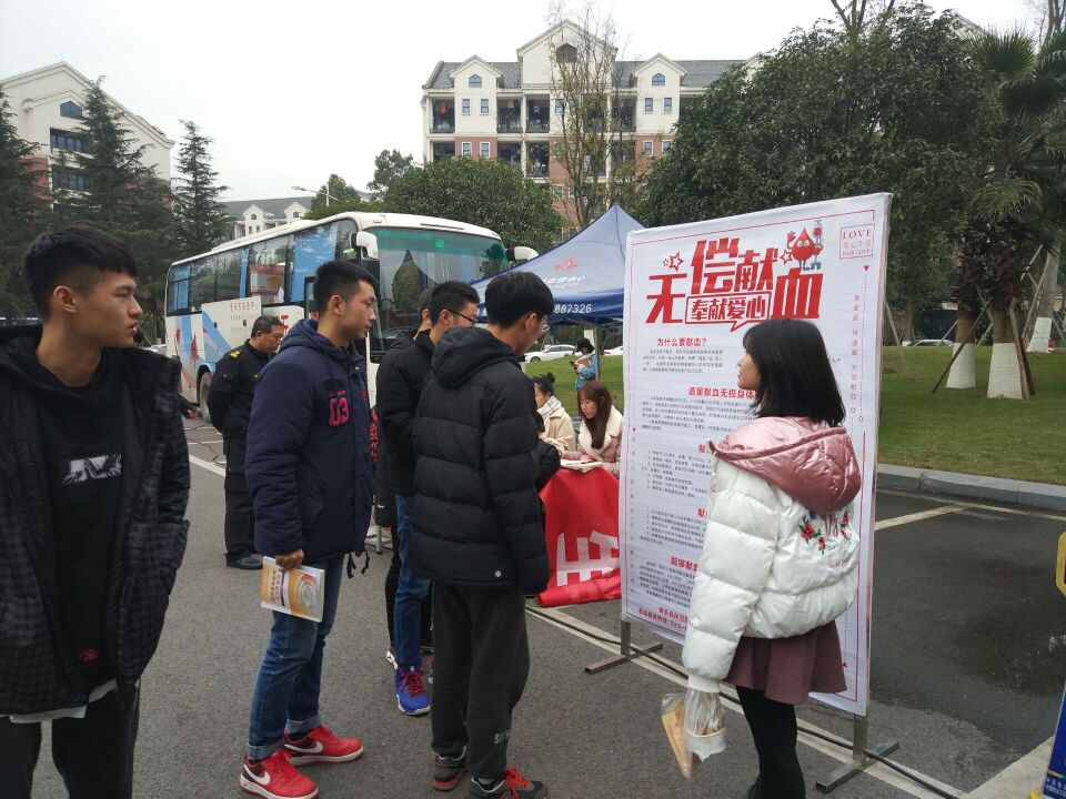 为展现新世纪大学生精神面貌,发扬大学生志愿精神,用爱心为生命加油。2018年12月12日-14日,由重庆市血液中心主办、我校后勤保障处承办的无偿献血活动于食堂正门顺利举行。