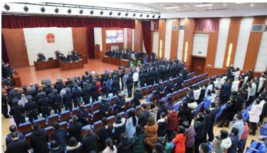 在揭牌仪式结束后,老师们和2018级的28名学生进入巴南区法院的庭审现场,旁听了一场公开审理的涉黑重大案件。这是一起震惊全市、犯罪跨省跨市且涉及金额巨大,受害人数较多的刑事案件。该案件中邓强等33人涉黑社会性质组织、寻衅滋事、敲诈勒索等11项罪名的刑事案件,其中23人涉组织、领导、参加黑社会性质组织犯罪。庭审时长长达2小时,庭审过程中气氛庄严,秩序井然,从传被告上庭宣布庭审纪律到宣读审判结果,同学们认真仔细地观摩了庭审的每一个环节,这使同学们对刑事诉讼的流程,真切感受到我国法律的威严和正义,有了更为深刻的了解,最后审判长宣读了对33名嫌犯的审判结果,在确认嫌犯无异议的后,法警带离嫌犯。