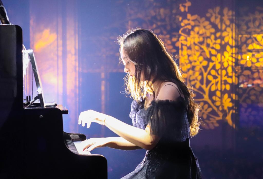晚会伊始,一首暖场曲目钢琴独奏《He is a pirate》瞬间燃爆教学楼二楼大厅,将师生带入了这场视听盛宴。旋律昂扬、热情洋溢、锣鼓铿锵的民乐演奏《春到湘江》拉开了本次音乐会的序幕;男生大合唱——《弹起我心爱的土琵琶》赢得观众的阵阵喝彩,让人感到洒脱而富有活力;一曲古筝合奏《井冈山》雄壮威武而又畅快活泼;合唱《祖国之子》不断将晚会推向高潮,唱响了全校师生沿着实现伟大中国梦的征程,不忘初心、继续前行的豪迈情怀和坚定信心,令全场师生为之动容;来自我校大学生艺术教育发展中心的专职教师田铭的一首独唱歌曲《在那遥远的地方》,中气十足的嗓音和婉转的音调无不体现出我校艺术专职教师的专业水平,再一次将全场气氛推向了高潮。