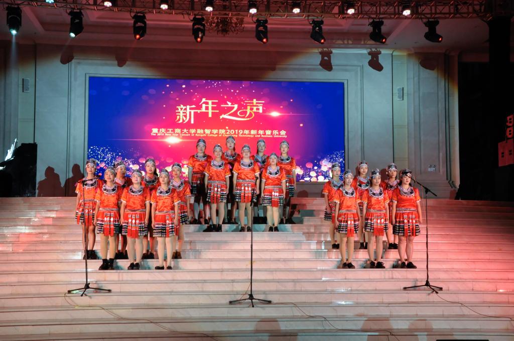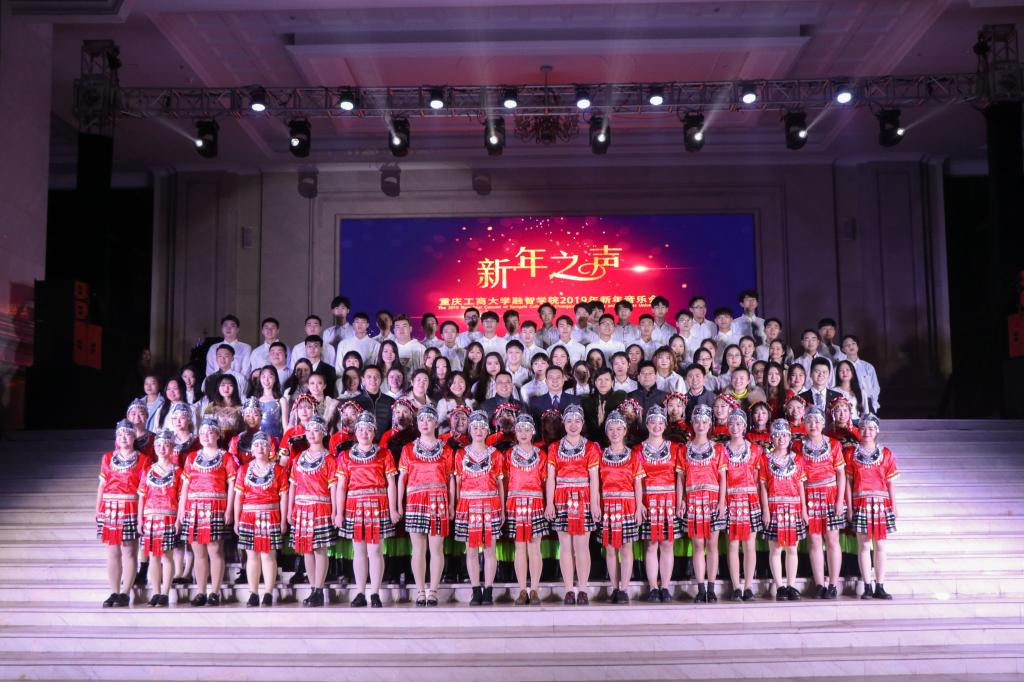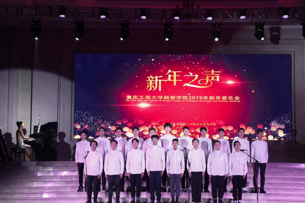 瑟瑟奏佳音,妙曲迎新年。2018年12月21日下午18:30,由共青团重庆工商大学融智学院委员会主办,大学生艺术团承办,校学生会、社团联合会协办的我校2019年新年音乐会,在教学楼二楼大厅正式拉开帷幕。学校党委书记丁广龙、副校长吴华安、党委副书记陈龙国、党政办主任王晓云、思政部主任常晓薇、学生处处长唐川川、学生处副处长兼团委书记李刚、基础部副主任吕福起、会计学院党总支副书记姚转花、经济学院党总支副书记乐晓勇、商务学院党总支副书记宋湘琴及师生代表800余人共同欣赏了这场视听盛宴。