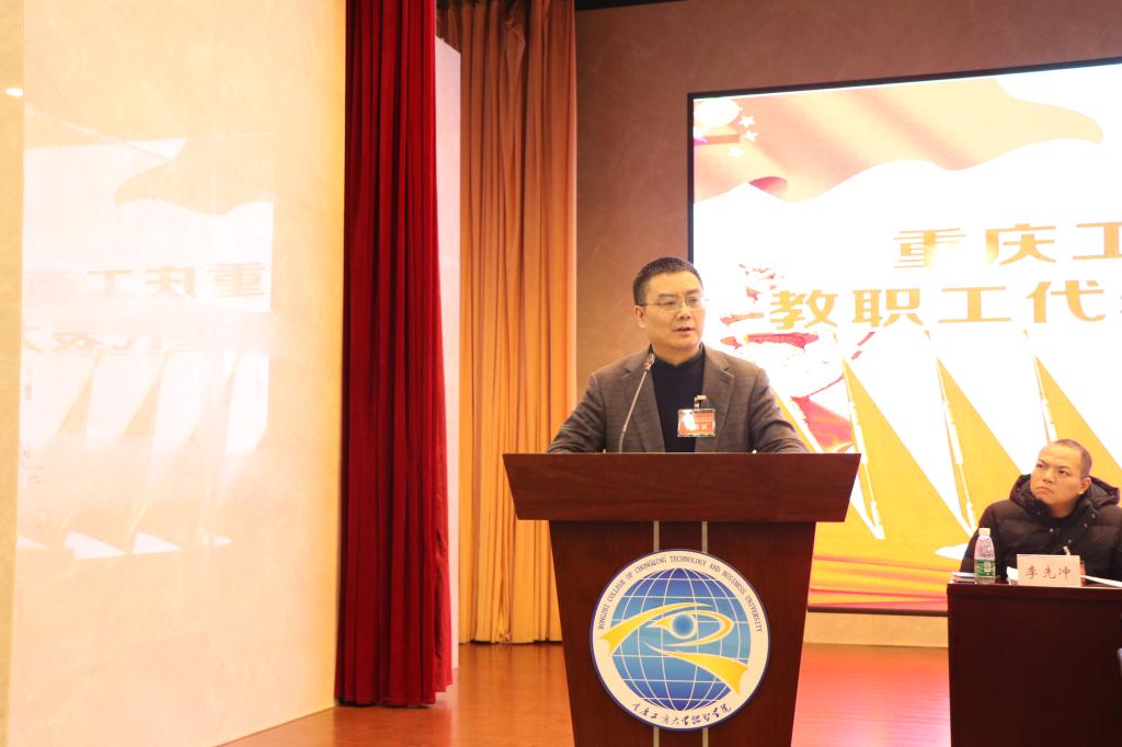 2018年12月29日下午,在雄壮嘹亮的国歌声中,我院第二次教职工代表大会暨工会会员代表大会在学术报告厅隆重召开。全体在校校领导及教职工代表等120余人参加了会议。大会由副院长沈民同志主持。重庆工商大学工会常务副主席曾林作为嘉宾出席了此次大会。