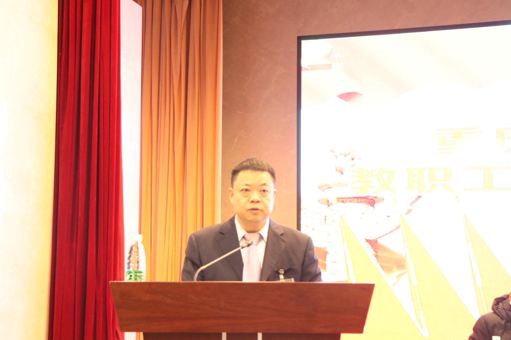 会议最后,党委书记丁广龙发表讲话。他说道,同志们,成绩来之不易,发展的道路更不会一帆风顺,我真诚的希望同志们在今后的工作中,在融智学院发展的过程中,要凝聚思想,统一共识。要紧密与学校党政保持一致,与学校中心工作步调一致,与学校的发展保持一致,凝心聚力,克坚攻难,共同推动学校又好又快发展;要增强责任感和使命感,将自己与学校发展看成荣辱共同体,充分发挥自己的聪明才智,积极为学校的发展建言献策,立足本职,务实工作;要继续发扬融智学院教职工求真务实、敢打敢拼、敢闯敢干的精神风貌,立足新时代,展现新风貌,做出新成就,绽放新风采。最后,丁广龙书记代表校党委向大会的成功召开表示祝贺,向各位代表、全体教职员工表示感谢和敬意。也祝愿我们的学校在新的一年红红火火,各方面工作再上新台阶。