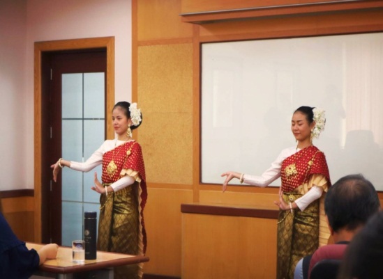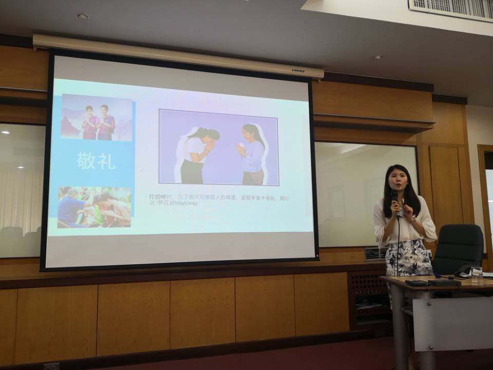 114日上午,泰国商会大学为游学团队举行了隆重的欢迎仪式。出席欢迎仪式有泰国商会大学Aaron loe博士、CIC学院蒋朝雄副院长、王毅老师、潘蕊老师及卢丹雅老师。首先,泰国学生以热情奔放的泰国舞蹈拉开了仪式序幕。CIC学院蒋朝雄副院长对远道而来的师生表达了热烈的欢迎;随后,泰国的老师们分别向大家介绍了泰国文化、泰国商会大学发展历程以及游学活动中的注意事项等;我校宋钰静老师表达了对泰国商会大学师生的感谢,并在发言中提到:眼界决定格局,要求同学们将实践与理论结合,珍惜游学考察的经历,更好的促进中泰文化交流与学习。仪式结束后,校方代表带领大家参观商会大学校园,感受校园的魅力。