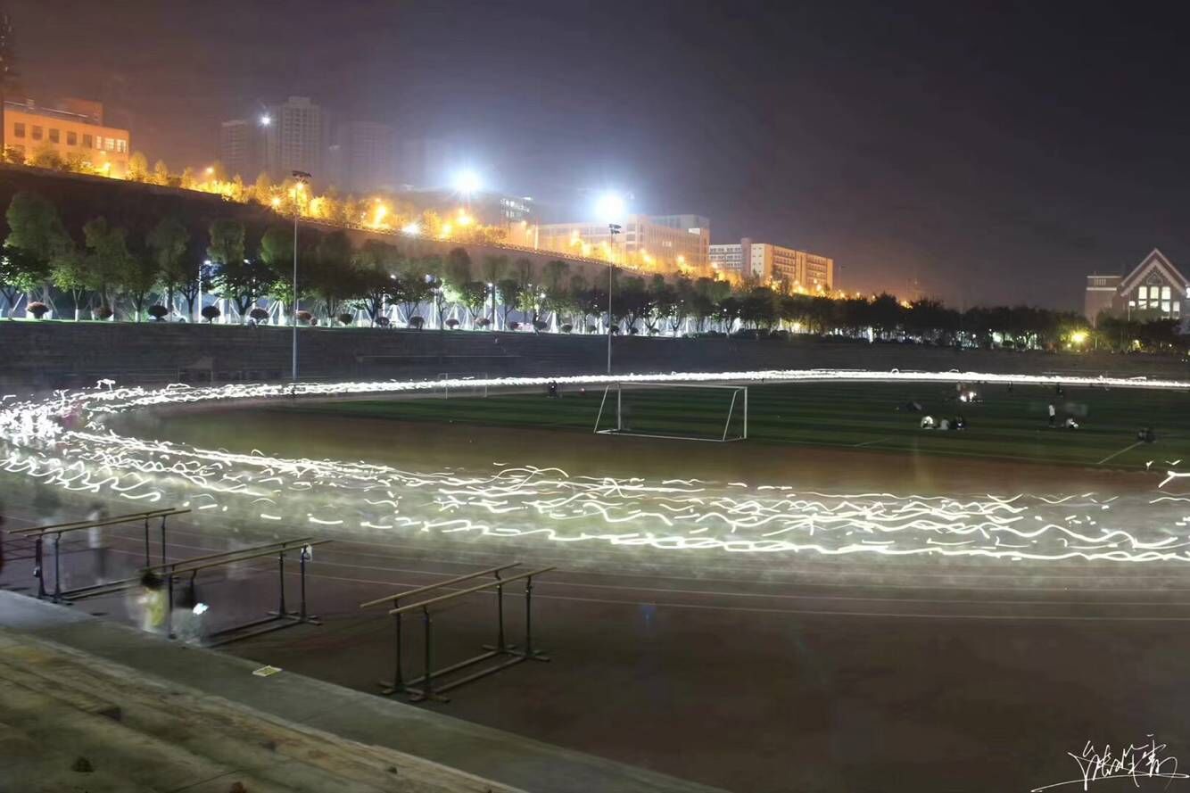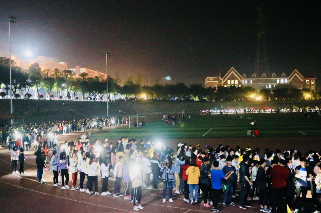 为深学笃用习近平新时代中国特色社会主义思想和党的十九大精神,庆祝中华人民共和国成立70周年、纪念五四运动100周年暨建团97周年,引导广大团员青年继承五四精神,坚定理想信念,做新时代的见证者、开创者和建设者,积极开展“三走活动”,吸引大学生走下网络、走出宿舍、走向操场,并结合“地球一小时,传承60+”的节约理念,在2019年3月28日晚上9点30分,由重庆工商大学融智学院团委举办的纪念“五四”运动100周年系列活动之“点赞新时代·引领新征程”熄灯荧光夜跑活动在足球场顺利举行,1000余名团员青年参与夜跑活动,用笑容和汗水留住青春。