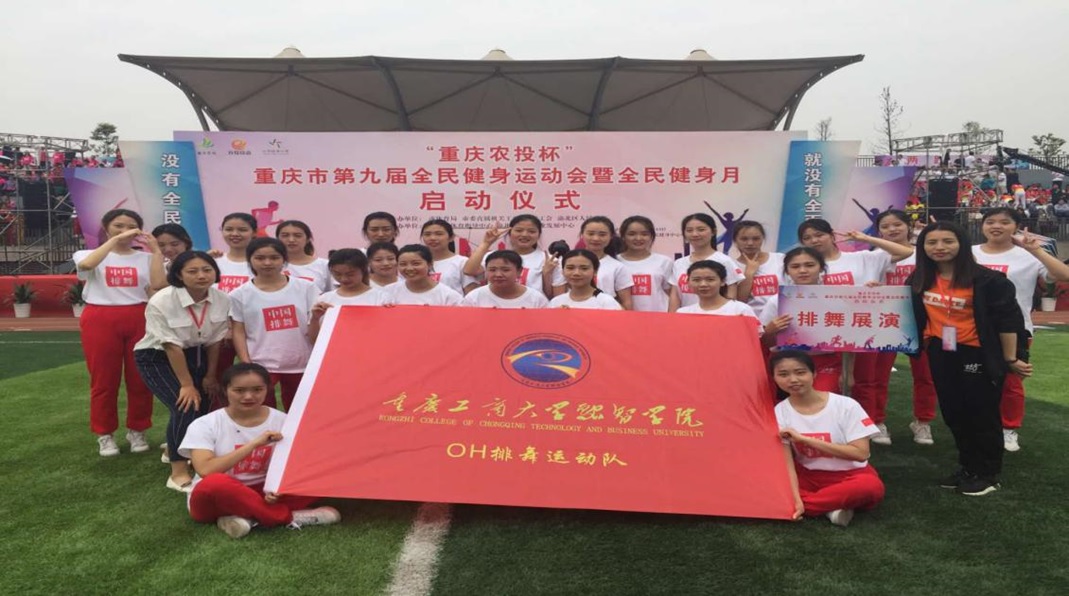 (通讯员:曹型丽)2019年4月13日由市体育局、市直机关工委、市总工会、渝北区人民政府主办的“重庆农投杯”重庆市第九届全民健身运动会暨全民健身月启动仪式特邀重庆工商大学融智学院“OH排舞队”代表队在渝北区全民健身中心参与展演。