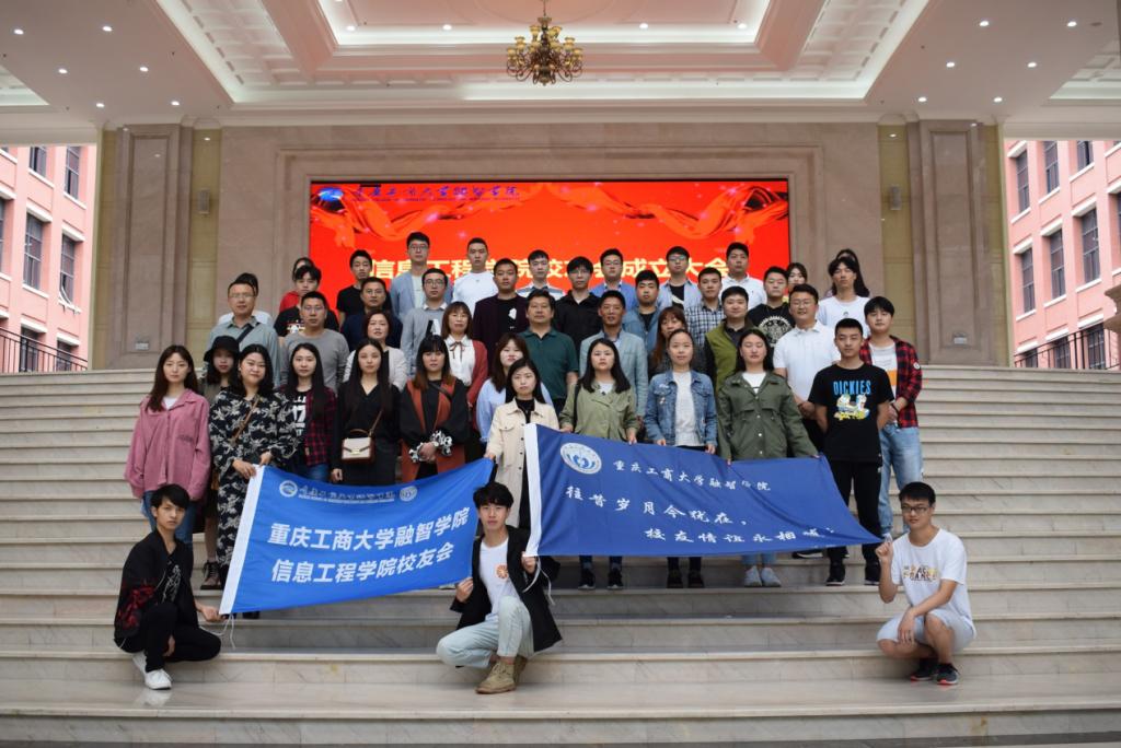 2019年4月20日,重庆工商大学融智学院信息工程学院校友会成立大会在会议室2422成功召开。信息工程学院党总支副书记叶远帆、国际合作交流处处长石转转、招就处刘朝峰老师、信息工程学院综合办副主任梁建良以及相关班级辅导员练丹、姜采妮、左智科、何建旭出席会议,30余名校友及嘉宾参加了成立大会。会议由夏治禹会长主持。