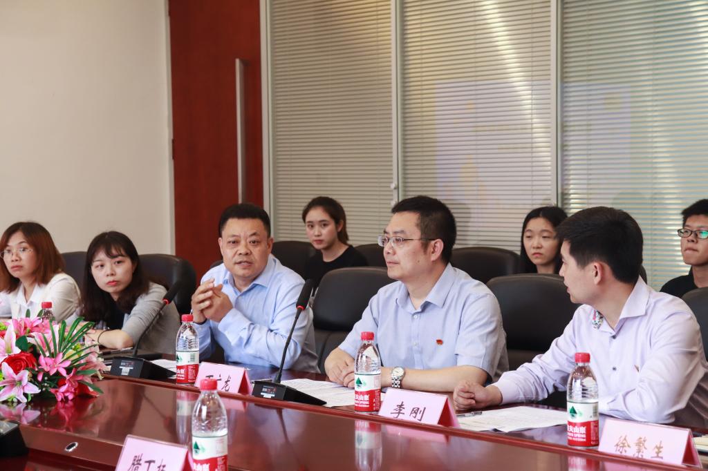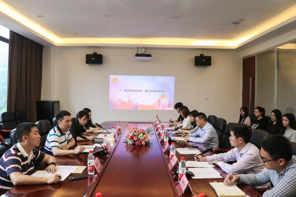 在随后召开的调研座谈会上,校党委书记丁广龙代表学校致欢迎辞并就我校发展现状、学科建设、对外交流合作、发展前景等作了全面介绍;校团委书记李刚以“发挥共青团育人功能,凝聚服务新时代青年”为主题对我校共青团工作作了全面汇报,他以共青团“思想、组织、实践、文化、服务、双创”等育人功能为切入点,介绍了我校共青团工作的基本情况与主要成绩;党委副书记陈龙国分别从健全工作机制、抓好“制度建设、组织建设、队伍建设、阵地建设、共青团品牌建设”等方面对学校“党建带团建”工作情况作了汇报;商务学院团总支书记徐繁生以“一个目标,两个全面,三个抓手”为中心,汇报了我校商务学院基层团建工作;在交流过程中,学生干部代表就团支部建设、团日活动的开展、团组织间的交流等问题进行了发言。