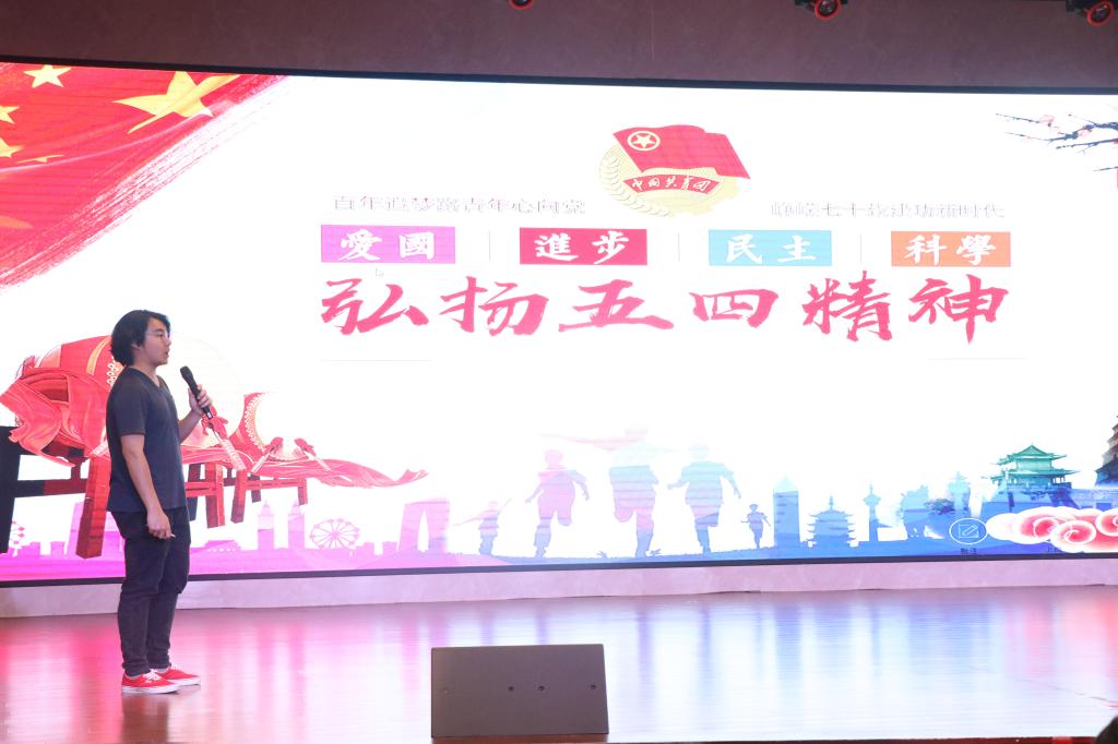 决赛现场由“团干部应知应会知识测试”“微团课演讲”“才艺展示”三个部分组成。经过层层筛选,来自不同学院的八名团干部们从前面的比赛中脱颖而出,晋级到决赛中。比赛一开始,首个环节便测试了团干部们对党、团基础知识的了解程度。团干部们熟练答题,用扎实的理论知识展现了团干部的基本素养。在第二个环节中,团干部们紧扣当今时代话题,从“扶贫”、“生态环境”、“五四精神”等多个方面为同学们进行微团课演讲。经济学院的一号选手喻潇铭以“青年新则国家新,青年强则国家强”的口号鼓舞广大青年们应承担起时代重任与使命;会计学院的三号选手龙秋甫从生态环境入手,以“低碳、循环、绿色”词语简单阐述了倡导保护环境的主题;我院的五号选手赵聪以“中国梦,强军梦”的主题,呼吁广大青年们应做强军路上的践行者,推进现代化国防的建设。比赛渐入尾声,在才艺展示环节,团干部们以激昂向上的朗诵赞颂了凉山救火烈士们永垂不朽的灵魂,博得了观众的掌声,又以清澈明朗的歌声表明了人生需奋勇前进的态度,让观众们备受鼓舞。