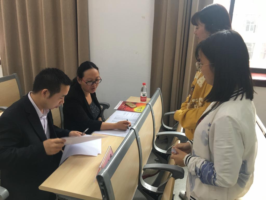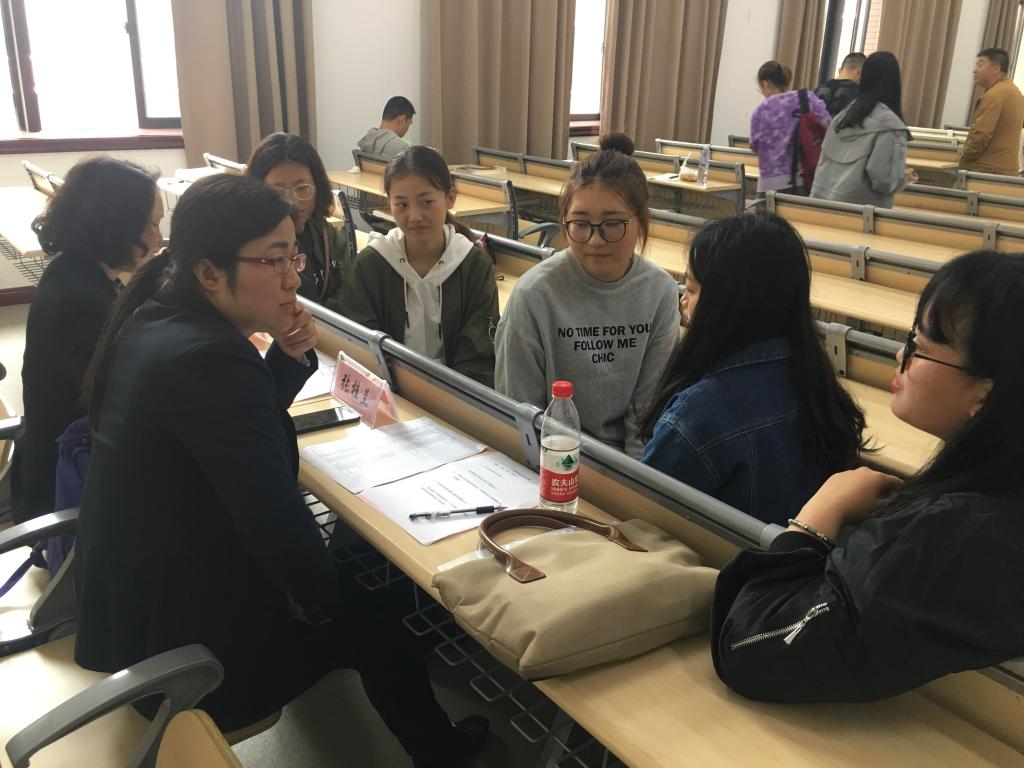 宣讲会结束后,由相关导师对需要面试的11组同学进行面试,11组同学以抽签的方式决定面试顺序。面试过程中,各同学回答了面试官提出的对保险的理解、毕业后的职业规划等相关问题。