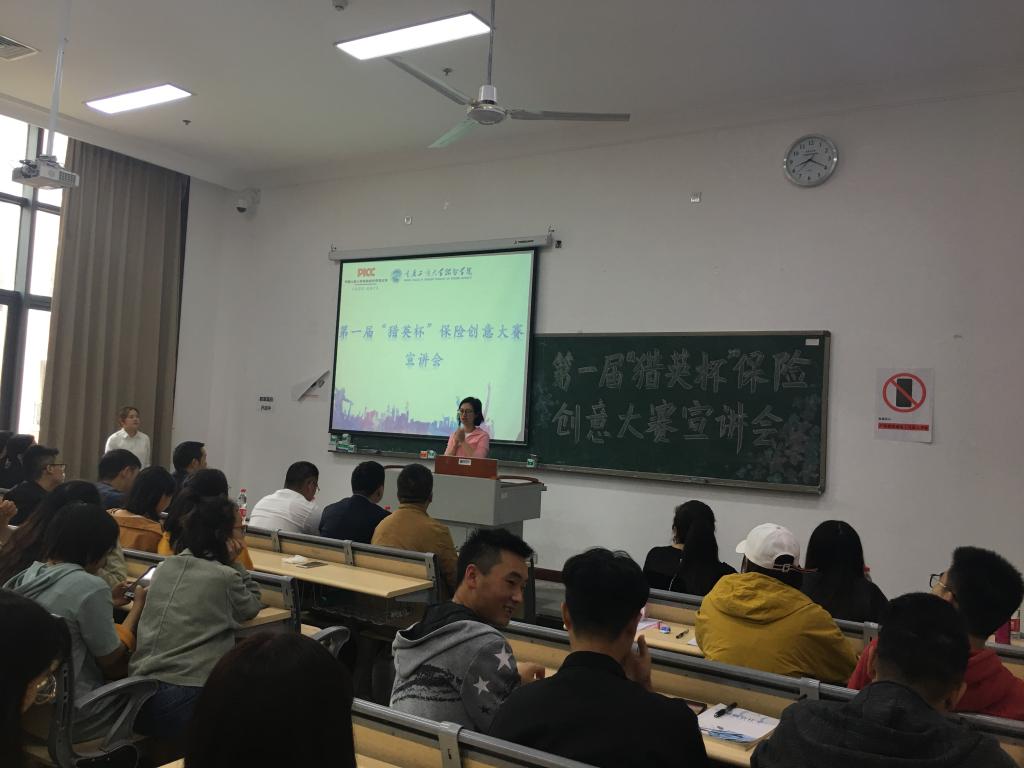 通过本次宣讲会,使同学们对保险机制有了更深的理解,并对本届“猎英杯”保险创意大赛产生了浓厚的兴趣,很多同学纷纷表示将努力备战,争取取得优异成绩。最后,热烈祝贺第一届“猎英杯”保险创意大赛宣讲会顺利举行。