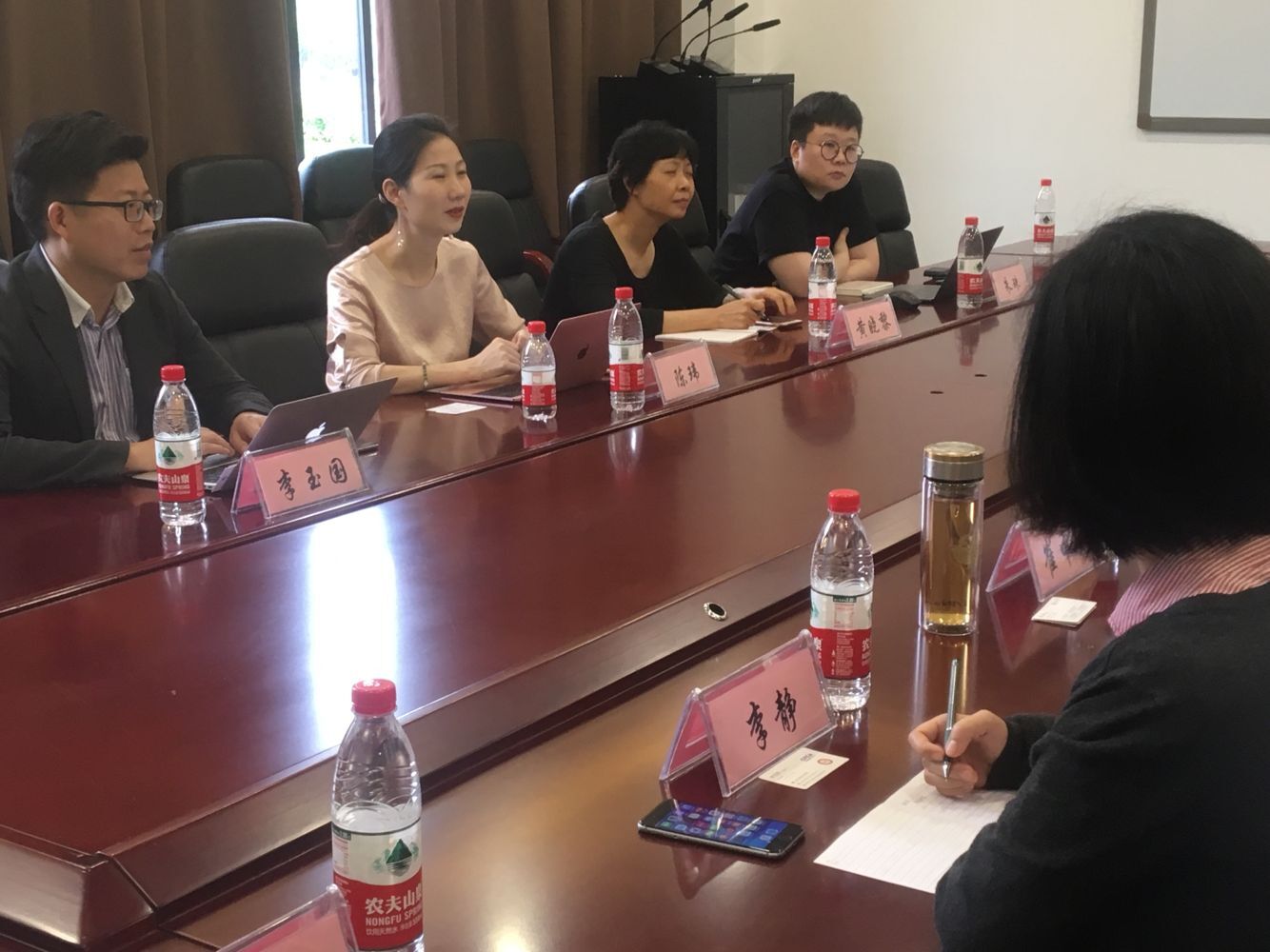 讲座结束后,在2301会议室,誉存科技与我校金融学院就校企合作进行进一步洽谈。誉存科技联合创始人兼COO陈玮博士,百行研究院副总经理、誉存科技销售总监李玉国先生,百行研究院智学院副院长黄晓黎院长,誉存科技品牌总监朱珠女士,我校常务副校长吴华安教授,我校教务处崔中山处长,金融学市级特色学科专业群负责人靳景玉教授,金融学院副院长贺晗博士及教师代表参加了会议。