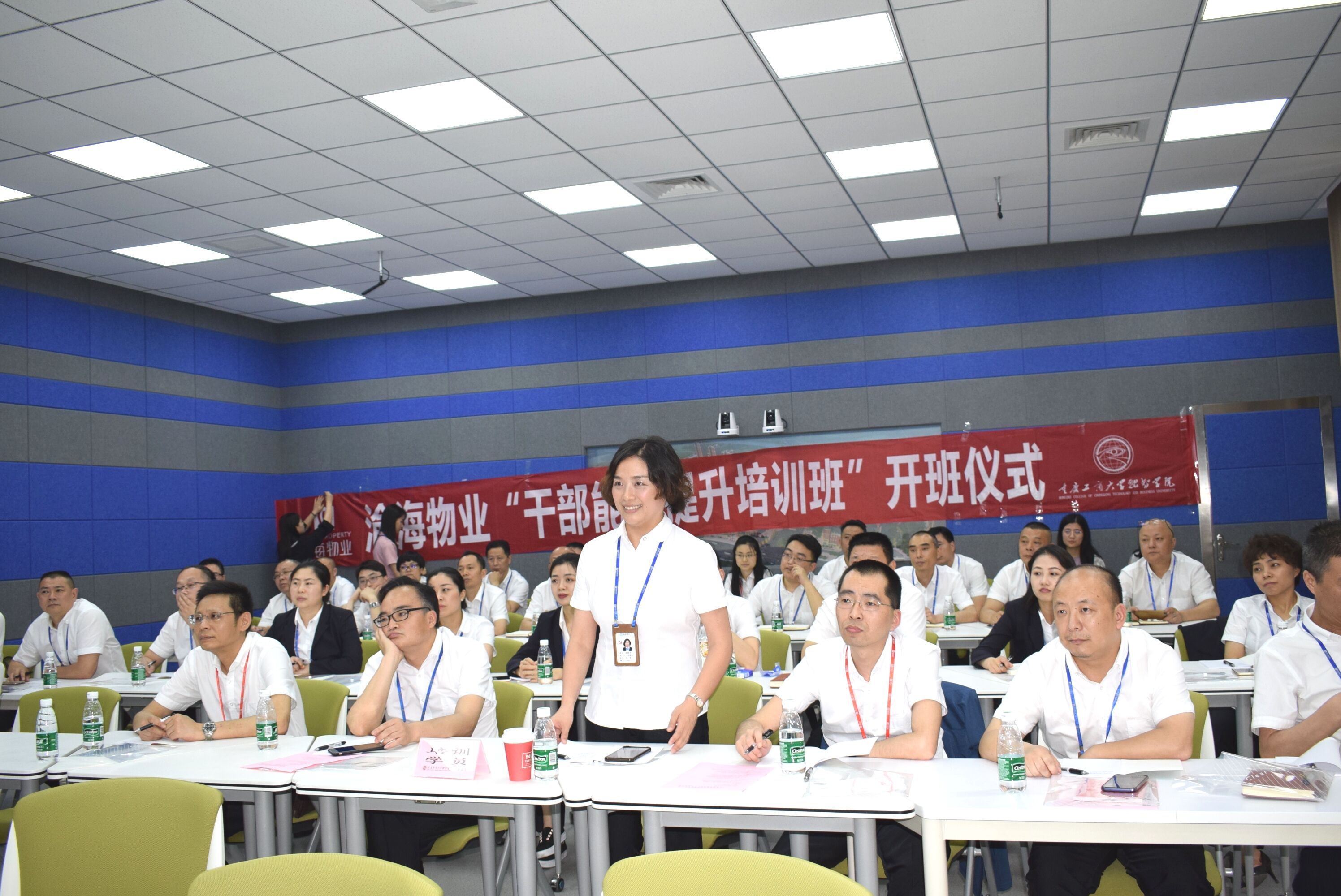 为进一步推动关于物业管理专业校企合作的发展进程,增强企业的创新与活力,提高企业干部的能力和素养。5月16日下午两点渝海物业管理有限责任公司“干部能力提升班”开班仪式在教室1220成功举办,出席本次仪式的有重庆渝海物业管理有限责任公司董事长叶强,副总经理付志军,副总经理徐雄,以及培训学员;重庆工商大学融智学院常务副校长吴华安 、教务处处长崔中山 、继续教育学院副院长曾真 、管理工程学院学术带头人刘伟、管理工程学院副院长黄兰、管理工程学院副书记高雪莲、物业管理专业教师代表们。
