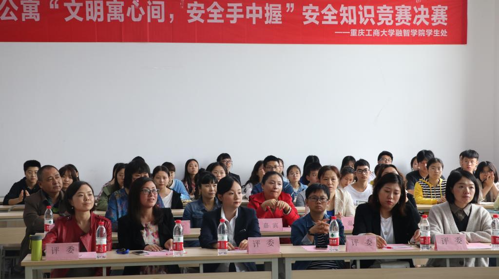 为加深同学们对安全知识的了解,增强理论知识用于实际生活的能力,2019年5月14日12:20,我校于教学楼1614展开了“文明寓心间,安全手中握”第二届安全知识竞赛决赛。此次比赛的评委老师由学生处杨惠琳老师、贺明玲老师、陈绪娟老师,保卫处黄琳城老师,物业部门蒋静老师担任。出席本次比赛的嘉宾有学生处王玲艳老师以及公寓管理中心全体园区辅导员们。