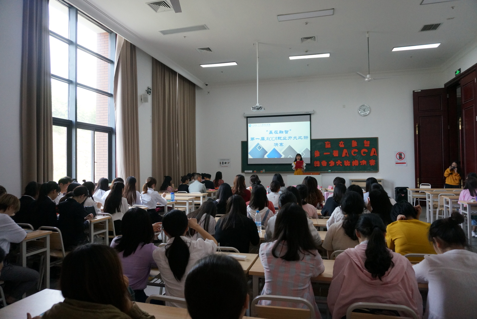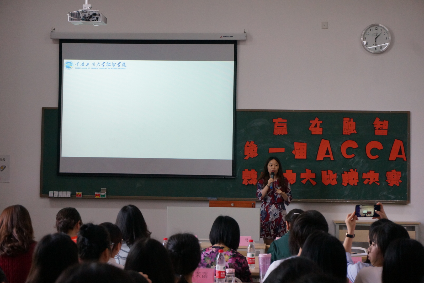 为加强我校ACCA成建制班学生专业技能的培养,全面提升同学们的综合素质和职场竞争力,进一步意识到理论知识与实践相结合的重要性。2019年5月17日下午13:00,由我校举办的“赢在融智”第一届ACCA就业力大比拼比赛决赛在教学楼1207教室成功举行。信永中和审计合伙人陈萌女士、南京永道工程咨询有限公司重庆分公司办公室主任熊模霞女士、中海物业人力资源部经理王晶女士、凯博财经教育优秀教师李薇雨、指导老师杨瑞丽、刘贤洲、陈石、李茉菡以及会计学院18ACCA班辅导员唐凤芬老师出席了本次大赛。