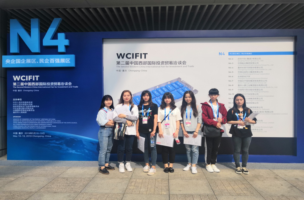 为深化“政行校企研”五位一体教学模式改革,深度服务于地方会展经济发展,在“第二十一届中国西部国际投资贸易洽谈会”(以下简称“西洽会”)筹备及组织期间,本专业教研室分别选派1名教师赴重庆市商务委西洽会组委会学习锻炼,选派7名学生分别赴重庆市商务委“西洽会”组委会与重庆市巴南区商务局参加实习实践。在“西洽会”举行期间,还组织10名专业教师,27名学生展开为期两天的调研实践。