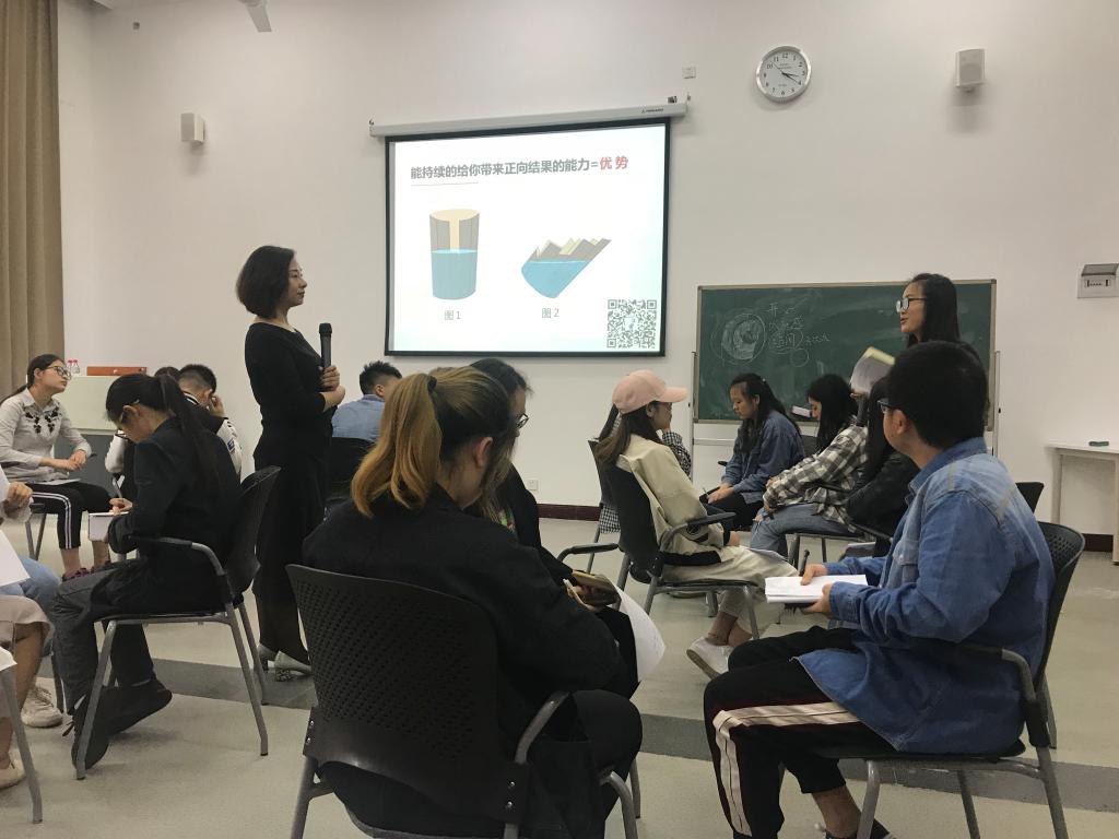 在第三环节,田老师带领大家根据《2017-2018中国企业招聘指数》中雇主最需要的“能力清单”整理自己的能力,挖掘自己的能力,强调要将自己的长板无限延长,具备优势思维,看到自己的闪光点,优势即职业生涯规划的奠基石。最后一个环节中,每组代表从个人、团体、生涯三个层面进行团体回顾与个人回顾,发言代表纷纷表示在本次活动中收获颇多。