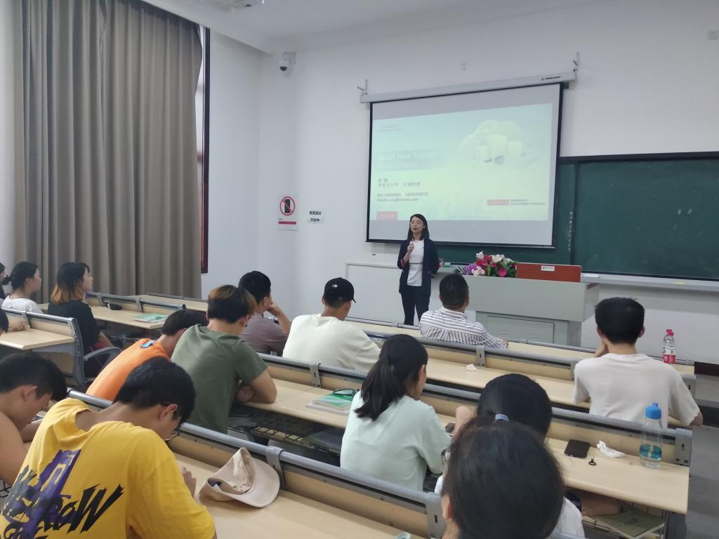 2019年6月11日,在1317教室我校信息工程学院邀请到江苏苏微软件技术有限公司董事长张鹏先生、甲骨文全球职业教育项目中国区区域经理徐敏女士为我校同学做了题为:新工科类大学生学业规划与大数据工程师成长路径的专题讲座。信息工程学院副院长姜文,信息管理与信息系统教研室主任左智科、甲骨文大数据卓越人才班教学管理团队相关教师及我校工科类专业同学们参加了本次讲座。