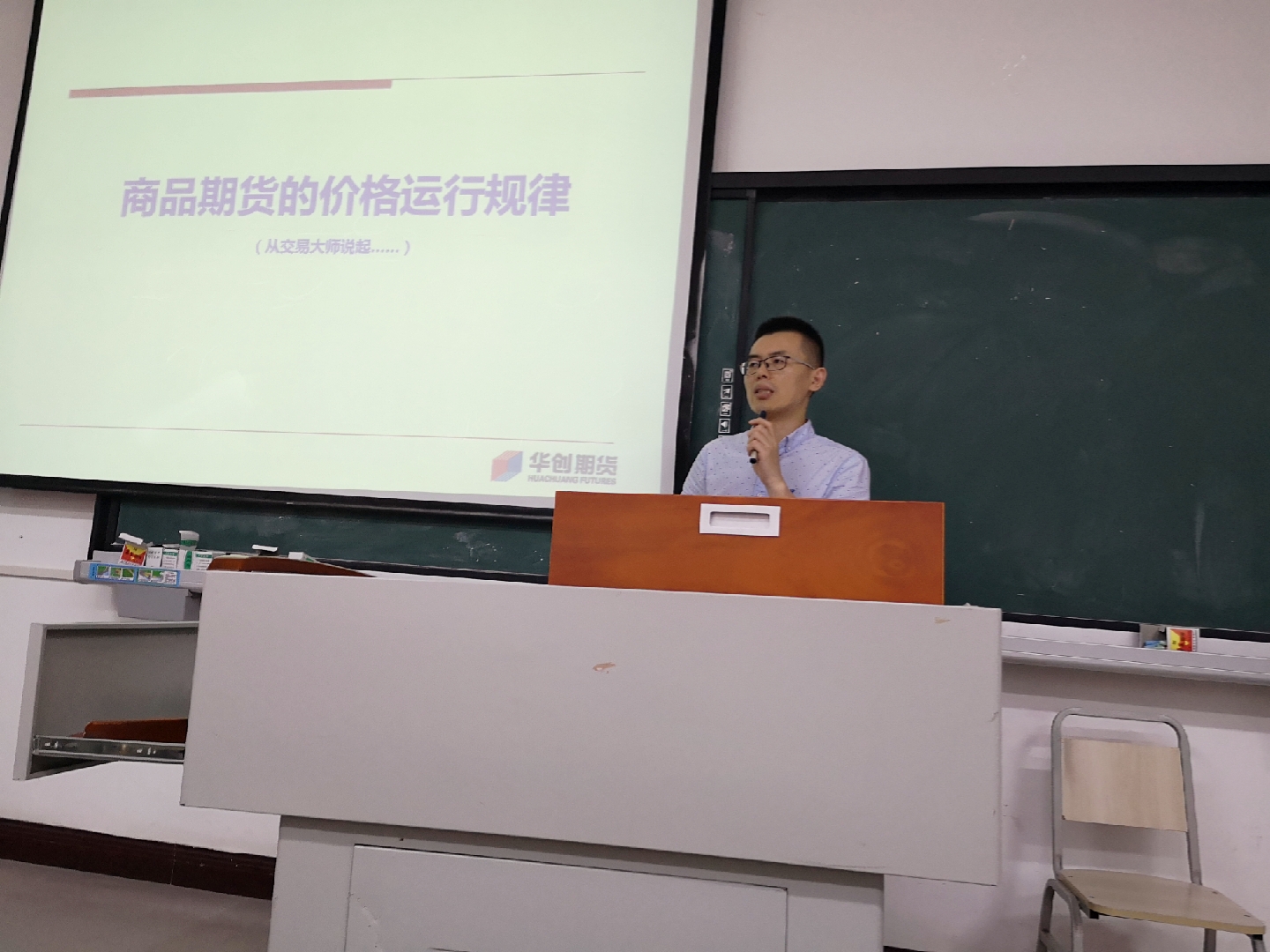 此次培训活动由金融学院团总支、学生会杨洋同学主持。首先,华创期货投资咨询研发部副总经理胡小磊讲解了商品期货投研分析及交易策略系统。其中商品期货投研分析主要包括基本面分析、宏观分析、经济周期、经济指标等内容及宏观信息获取渠道的方式,并为同学介绍交易需建立一套完整的期货交易系统。接着,华创期货客户服务中心总经理李玉光讲解了“商品期货的价格运行规律及易星(极星)软件介绍”,深入浅出地解读了业界两位交易大师巴菲特和索罗斯投资逻辑、交易思想,特别指出索罗斯提出的“正确性的量级”。然后解读了“市场-资金四象限模型”及王阳明的心学四句教,进一步引领同学领悟大师的交易思想。最后,动员同们学充分利用六月份的预热阶段提前进入模拟交易大赛备战状态。