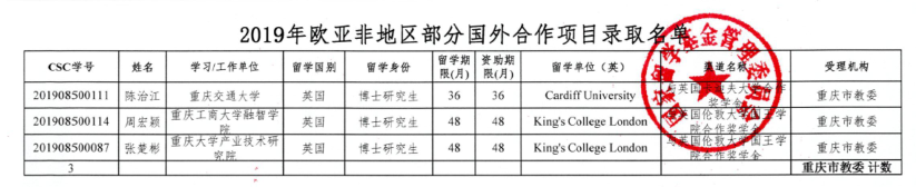 根据国家留学基金管理委员会《2019年国家建设高水平大学公派研究生项目选派办法》,经国家留学基金委专家评审,我校周宏颖老师荣获2019年国家建设高水平大学公派研究生项目资助。这是我校教师首次获得此类资助。周宏颖老师将于20199月赴英国伦敦大学国王学院攻读博士学位,费用由国家留学基金委全额资助。据了解,本年度重庆市获得该项目英国公派留学资格的仅有三位教师,另外两位教师分别来自重庆大学和重庆交通大学。