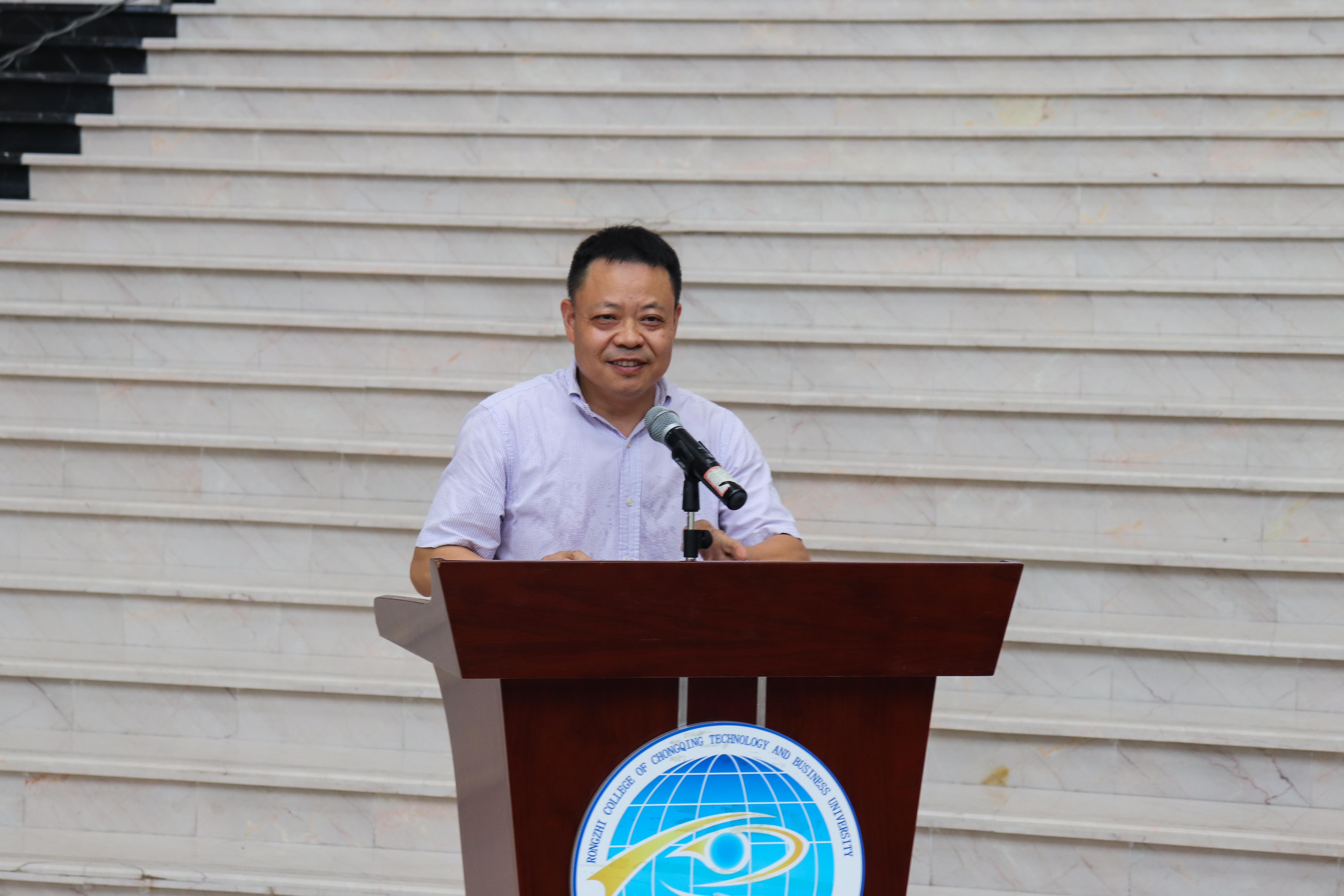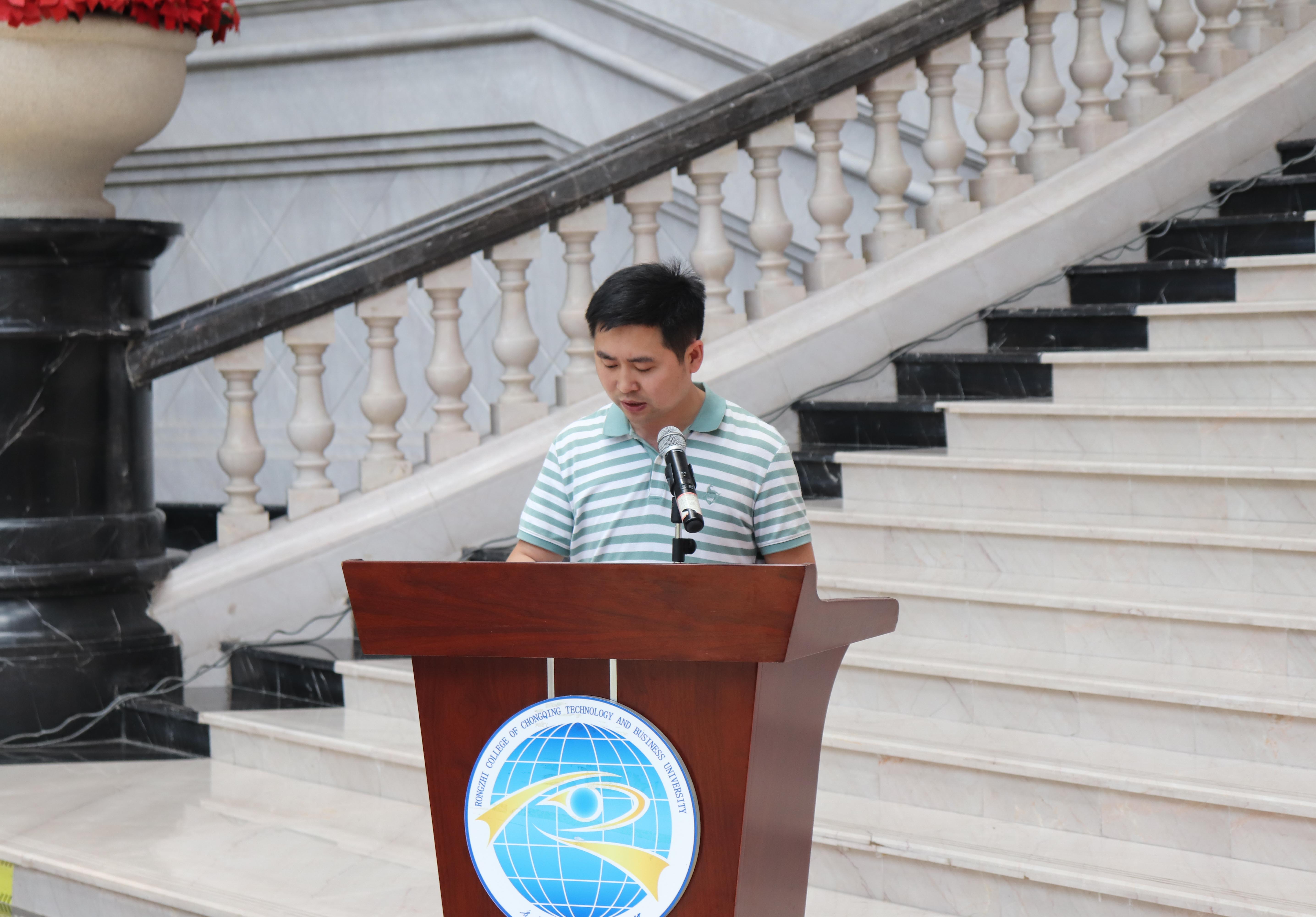 仪式最后,陈副书记发表讲话,强调了社会实践对大学生的重要意义,总结了我校在社会实践方面取得的优异成果,并对今年“三下乡”暑期社会实践提出了三点殷切期望:一要紧扣“青春心向党,建功新时代”的主题,将习近平总书记对重庆提出的“两点”定位、“两地”“两高”目标以及发挥“三个作用”的重要要求进行广泛宣传,为决胜全面建成小康社会、夺取新时代中国特色社会主义伟大胜利汇聚磅礴青春力量;二要坚定理想信念,脚踏实地奉献,鼓励同学们在实践中见真知、长才干、励意志,提升道德素质与修养,勇当实现中华民族伟大复兴的生力军;三要强化安全意识,注意一言一行,不断增强自我保护意识,制定防范预案,并在实践中展现融智学子的良好形象。