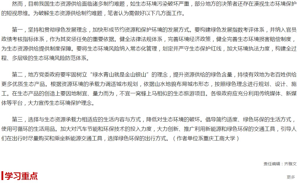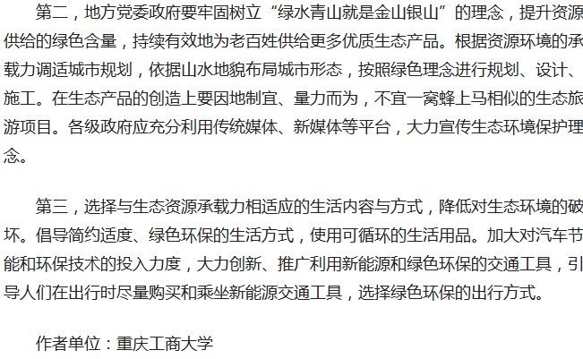 2019年7月16日,我校思政部教师陈开江副教授和重庆工商大学二级教授文传浩教授共同撰写的报刊文章“破解生态资源供给制约难题”在中国生态环境部主办的《中国环境报》发表。文章发表后,很快被人民网、中国经济网、求是网、中工网、法制网、海外网等多家网站转载,同时还被中共中央宣传部主办的学习强国学习平台、生态环境部宣传教育中心转发。文章如下: 文章链接: 人民网环保频道:http://env.people.com.cn/n1/2019/0716/c1010-31236536.html 中国经济网:http://www.ce.cn/cysc/stwm/gd/201907/17/t20190717_32640178.shtml 求是网:http://www.qstheory.cn/zoology/2019-07/16/c_1124757765.htm 中工网:http://green.workercn.cn/33226/201907/16/190716105443203.shtml 法制网:http://www.legaldaily.com.cn/environmental_protection/content/content_7935830.html 海外网:http://shengtai.haiwainet.cn/n/2019/0716/c3543620-31593439.html 学习强国学习平台:https://www.xuexi.cn/lgpage/detail/index.html?id=8987702337722170636 生态环境部宣传教育中心:http://www.chinaeol.net/hjxw/gnxw/201907/t20190717_711415.shtml。
