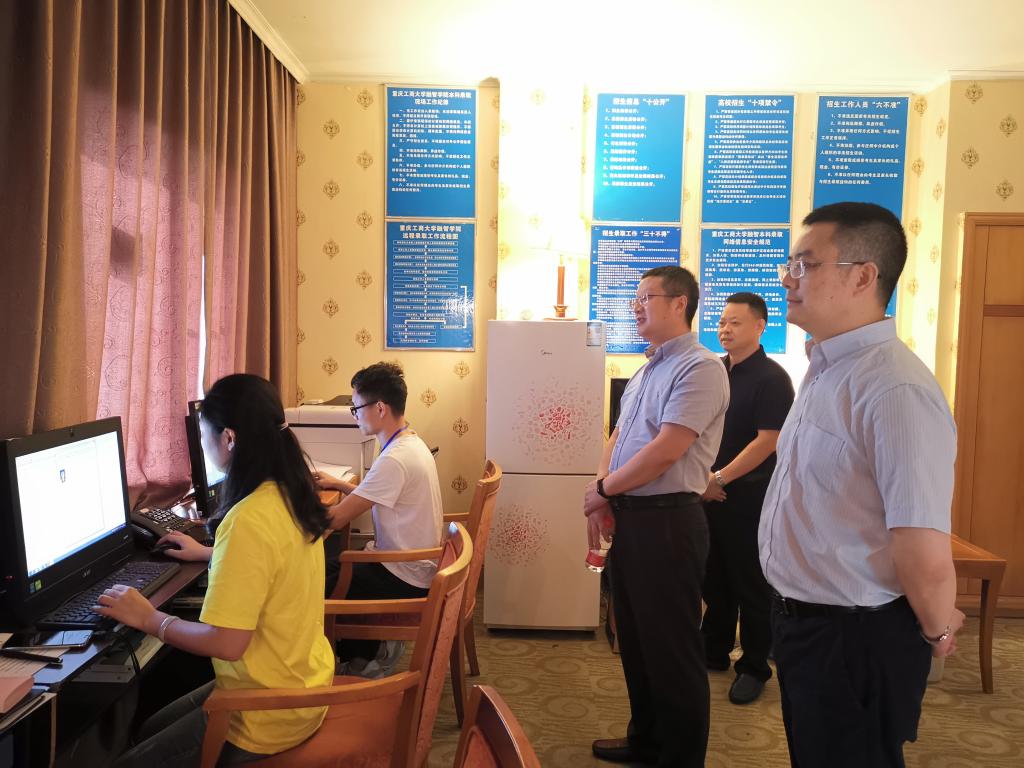 7月23日,校党委书记丁广龙、常务副校长吴华安,党委副书记兼纪委书记、工会主席陈龙国、校长助理李春雷来到我校招生录取工作现场,看望和慰问招生工作人员,检查指导招生工作。