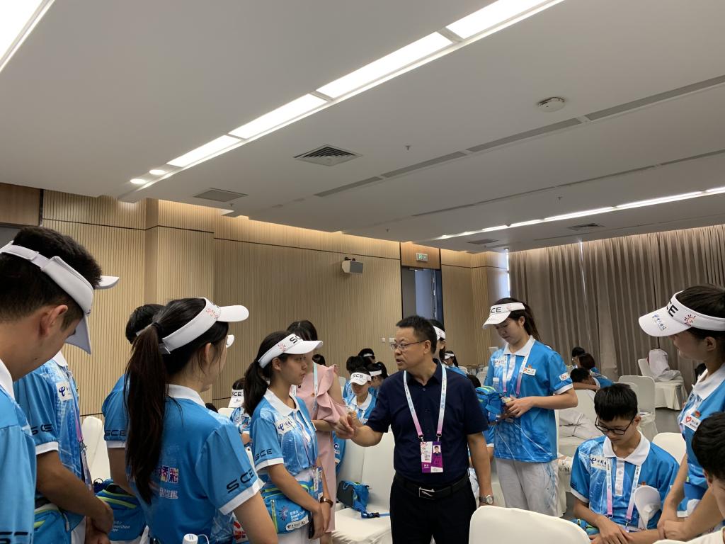 827日下午,我校党委陈龙国副书记来到重庆国博中心,亲切看望慰问了我校参与2019智博会志愿者服务的同学们。