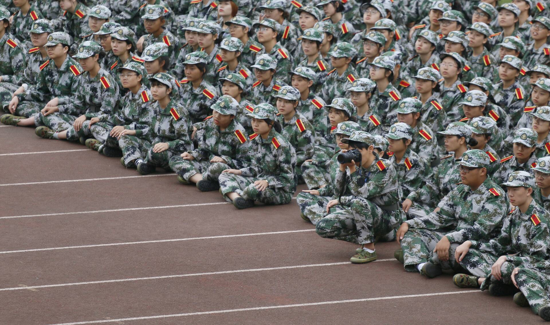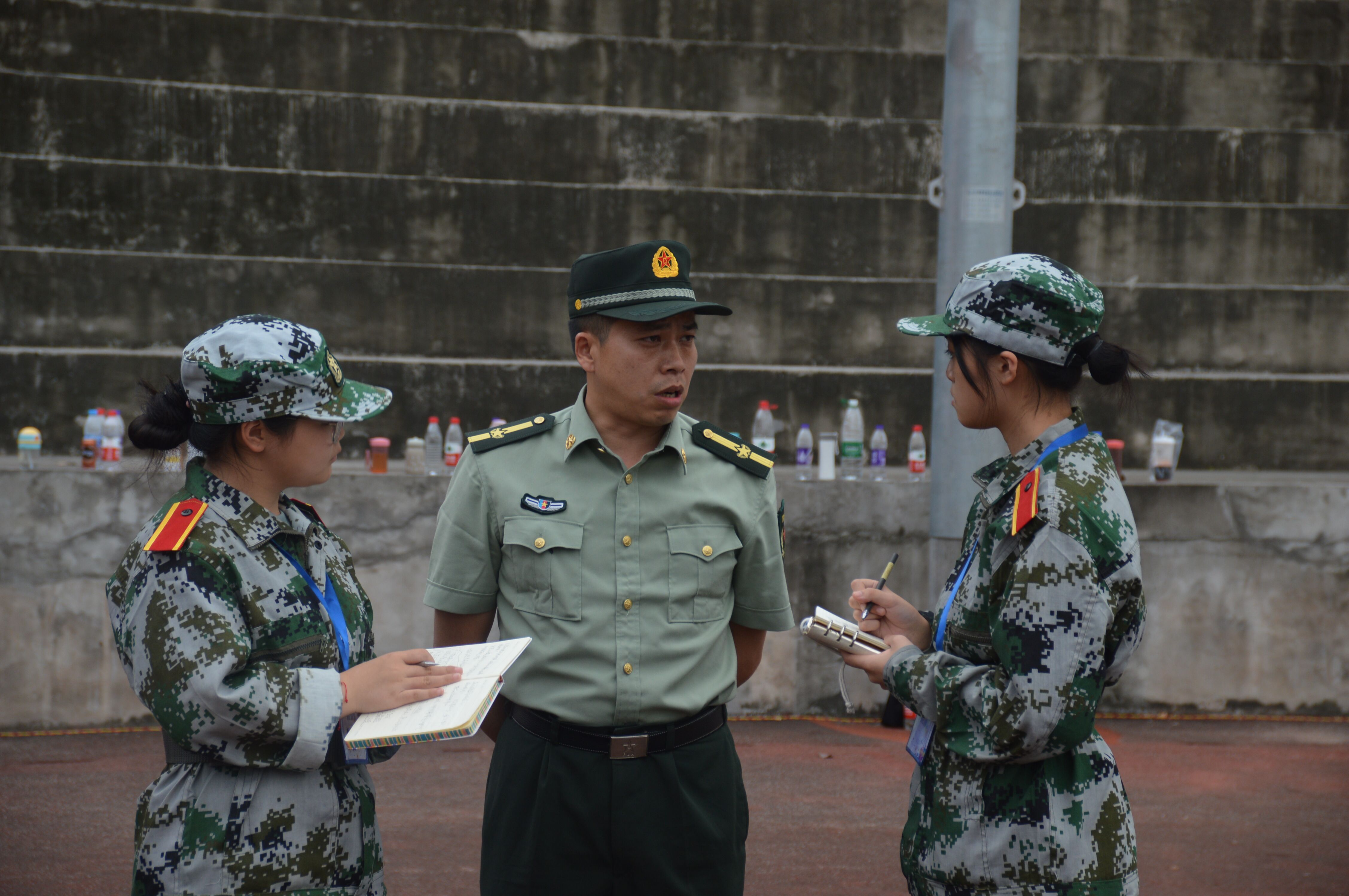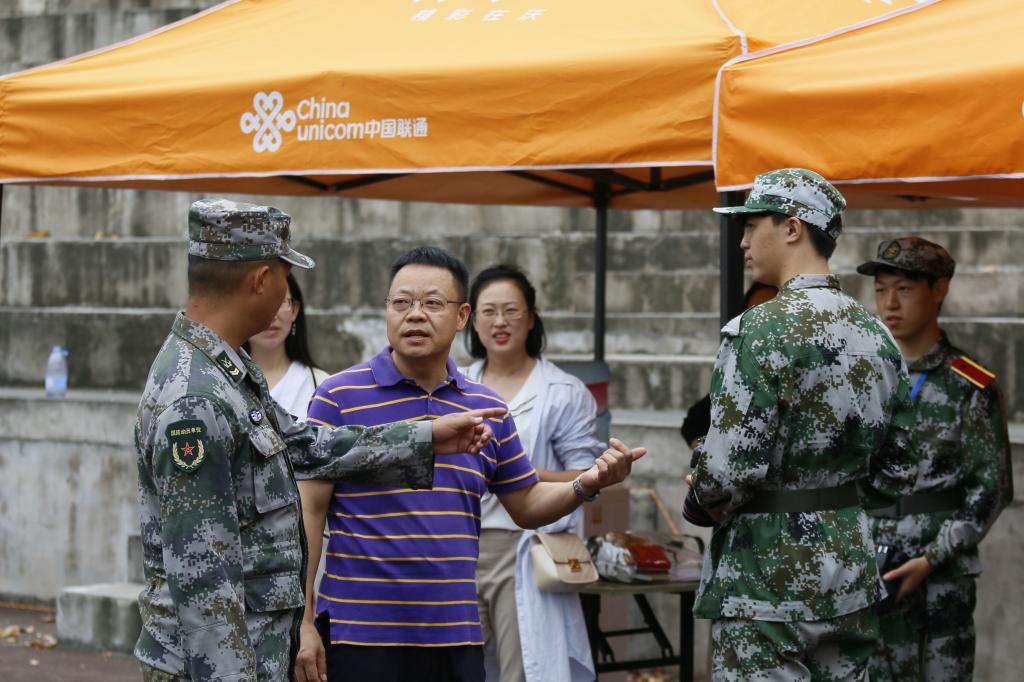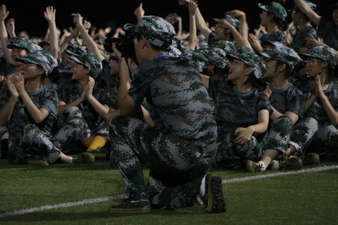(通讯员 李琴 刘忠楠 程洪宇)当参训学生们在训练场上挥洒汗水、刻苦训练时,有一群人背着单反,按下快门,记录他们刚毅的神情和飒爽的英姿;当学生们坐在训练场上休息,听着主席台上传来的悦耳歌声时,有一群人拿着纸笔记下他们训练的感受和感悟;当所有的参训学生回到寝室进入梦乡时,有一群人还在挑灯夜战,汇总白天军训生活的点点滴滴,分配第二天的工作任务。他们不参加训练,但是他们同样感悟着军训,他们是军训记者团。