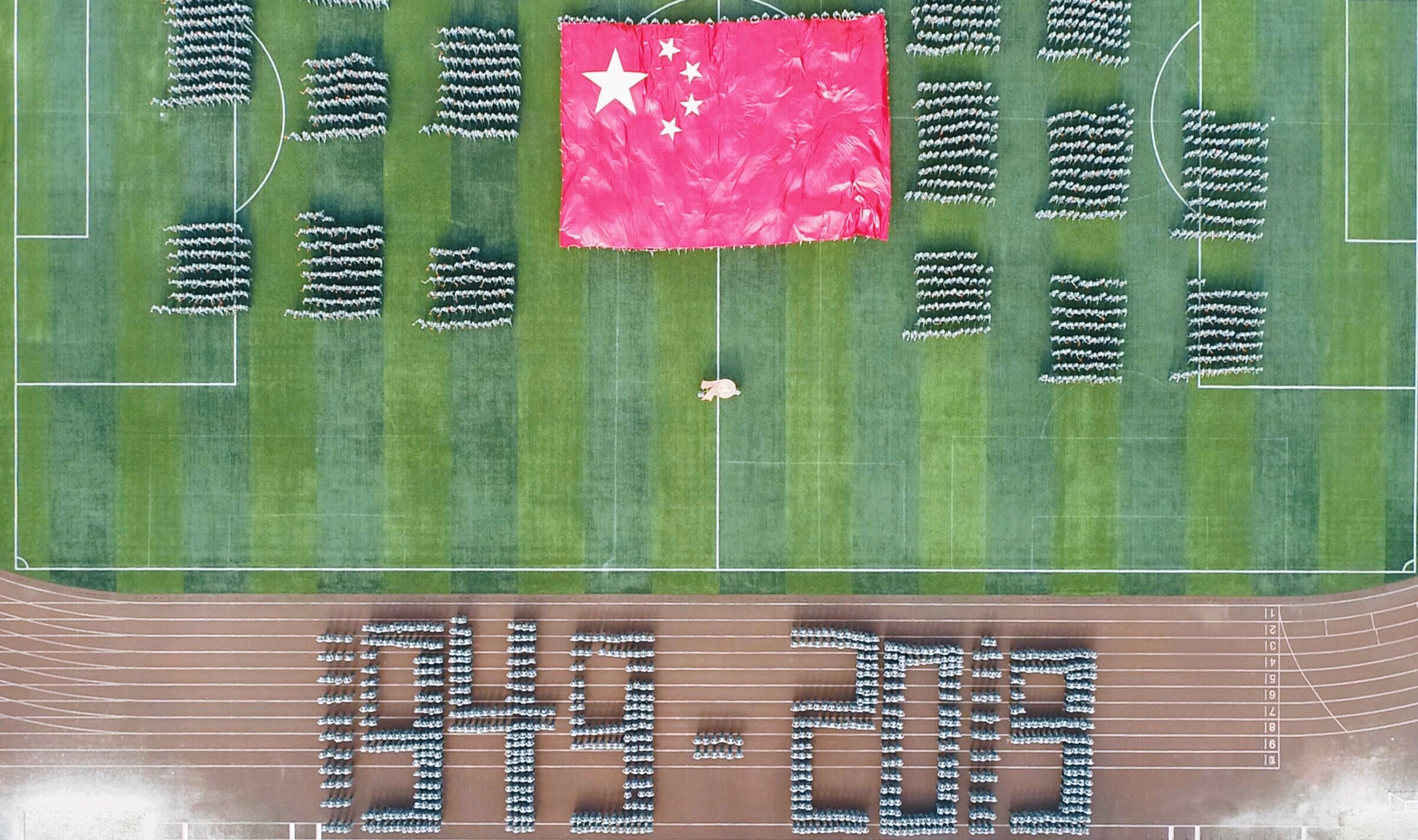 “五星红旗,你是我的骄傲,五星红旗,我为你自豪......”当气势恢宏的合唱声响彻操场,没有人不爱这热血的中国红。队形变化中,“1949-2019”、“融智”、“祖国”的字形一一展示,70年的沧桑巨变,祖国的发展令世界为之惊叹,一种作为中国人的自豪感由然而生,这一场演绎是融智学子致敬祖国的最佳礼物。