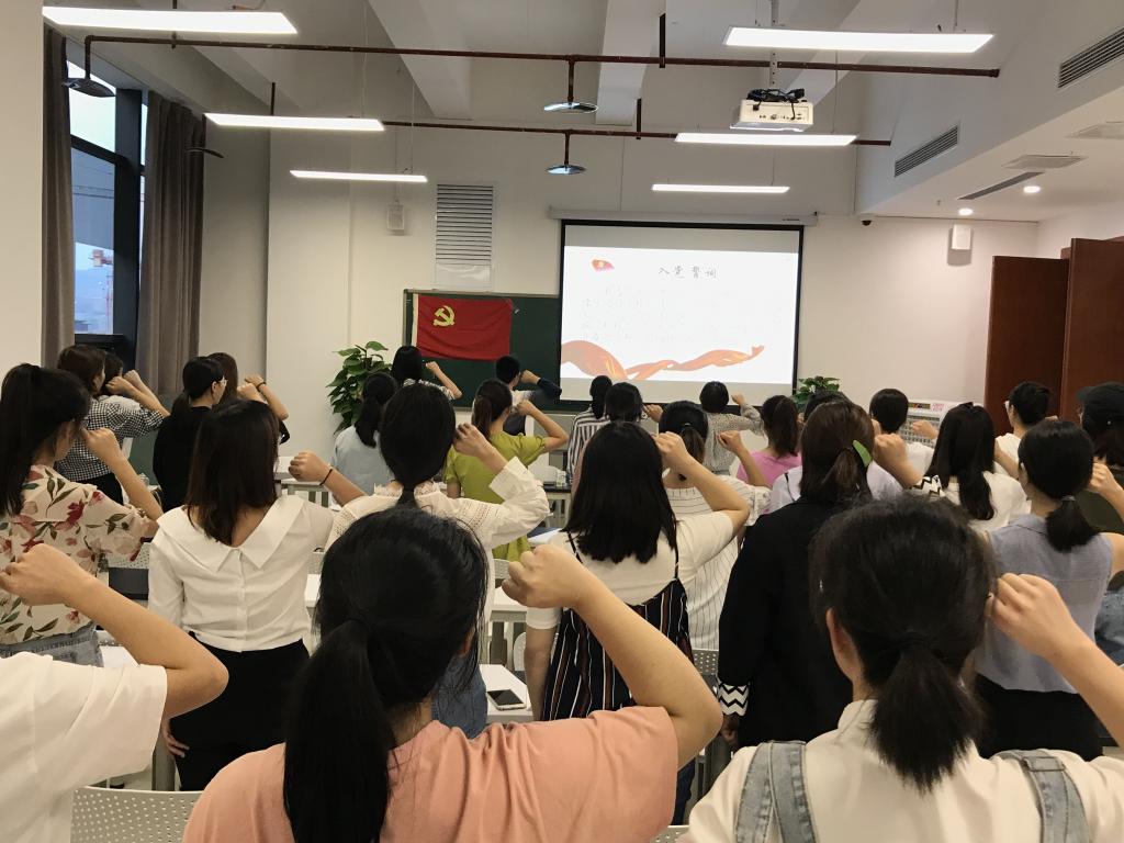 随后,学生党支部也积极响应号召,26日17:00会计学院党总支第一、第二学生党支部组织全体学生党员在产业园406教室召开了组织生活会。会上,学生第二党支部书记杨秋菊同志带领全体党员一起学习习近平总书记在“不忘初心,牢记使命”主题教育工作会议上的讲话和全市“不忘初心、牢记使命”主题教育工作会议的精神;学生第一党支部书记唐凤芬同志为全体党员详细解读了《重庆工商大学大学融智学院开展“不忘初心 牢记使命”主题教育方案》,并就学生支部主题教育计划做具体安排,强调要将学习落到实处,把学习教育、调查研究、检视问题、整改落实贯通起来、贯穿始终。最后,全体党员在学生党支部组织委员游登贵同志的带领下面对鲜红的党旗,高举右拳,重温入党誓词,坚定全体党员永远跟党走的信念。
