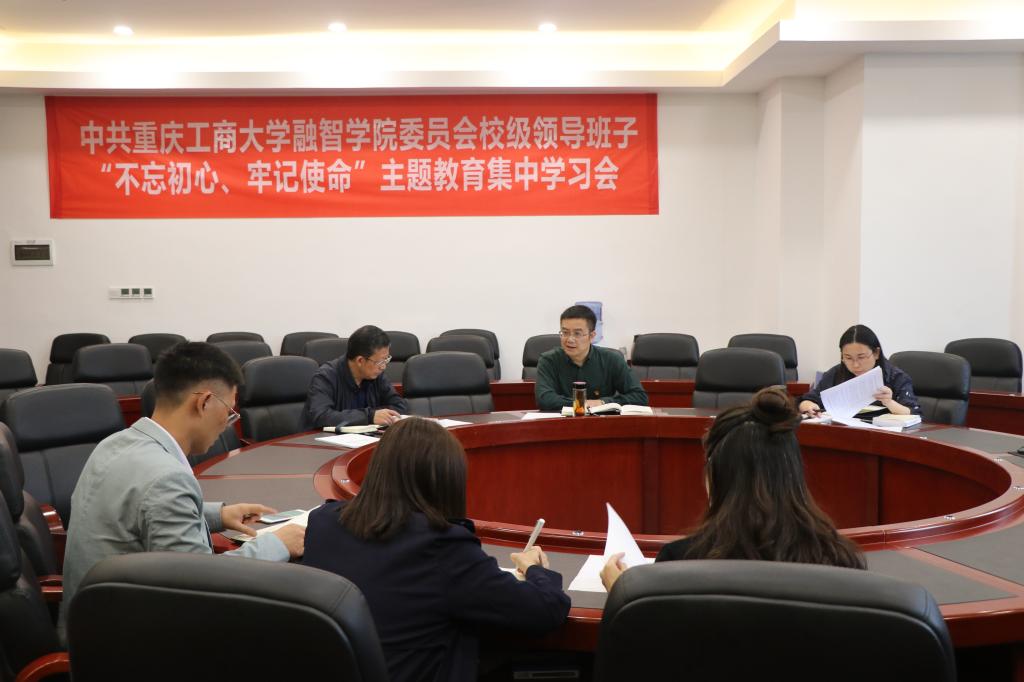 10月8日,按照重庆工商大学融智学院“不忘初心、牢记使命”主题教育工作部署,我校“不忘初心、牢记使命”主题教育校级领导班子成员集中学习研讨会在行政楼2303会议室召开,重点学习《习近平关于“不忘初心、牢记使命重要论述选编》(以下简称“《选编》”)。校党委书记丁广龙、校党委副书记陈龙国、副校长沈民、校长助理房朝君等校领导班子成员参加学习,主题小组领导办公室工作人员列席学习。会议由党委书记丁广龙主持。