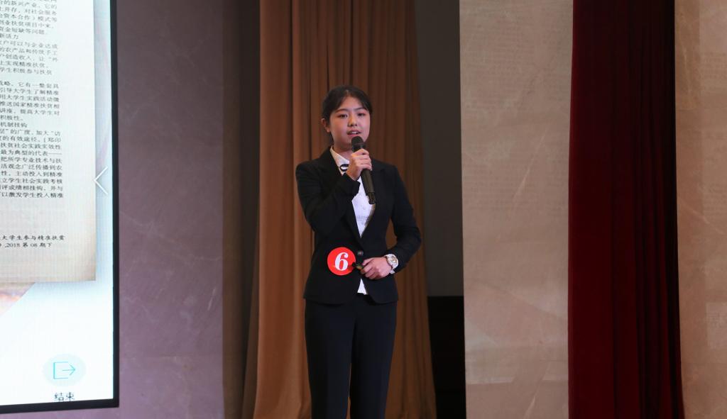 在选手答辩环节,12位选手分别从思想政治、学业成绩、获奖结果、科技创新、文体竞赛、社会实践等方面进行论述。其中一号选手朱佳宝获奖众多、实践经历丰富,令人惊叹;七号选手刘妍聪作为唯一一名大二同学,在台上的表现自信大方、沉着冷静,也让人佩服;而六号选手匡雨柔作为去年国奖的获得者今年也以优异的成绩进入答辩,丰富的答辩经历让她在回答问题时思考全面、见解独到,更赢得了评委的肯定。
