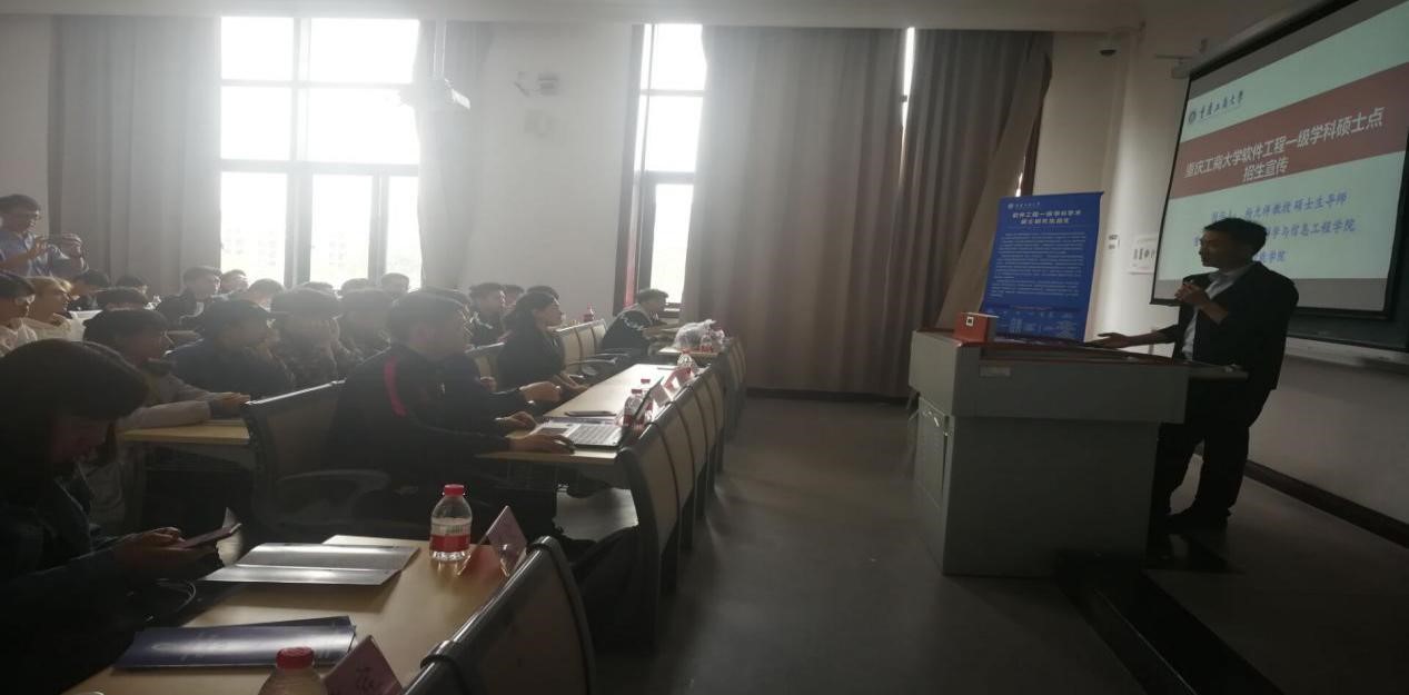 2019年10月17日中午13点,我院在1307教室举行了“明确目标,备战考研”主题考研讲座。本次讲座邀请到重庆工商大学计算机科学与信息工程学院杨光祥教授来为同学们提供专业考研指导。参加此次讲座的有信息工程学院党总支副书记叶远帆老师,信息工程学院副院长姜文老师,教研室主任王莉莉、左智科老师、专职辅导员何建旭老师、汪建军老师以及2017级各班有意向考研的同学们。