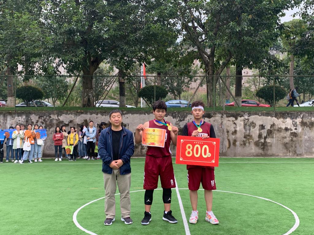 比赛结束后,颁奖仪式在全场的欢呼声中举行。由陈萍书记、于成江主任、闾鹏老师、张凤瑛老师为获奖队伍颁奖,此时此刻,队员们个个笑逐颜开,丝毫没有赛场上紧张的气氛,毫无芥蒂的互相击掌拥抱,充分展现了友谊第一比赛第二的精神。至此,重庆市工商大学融智学院金融学院第四届“新生杯”篮球赛在和谐愉快的气氛中落下帷幕。