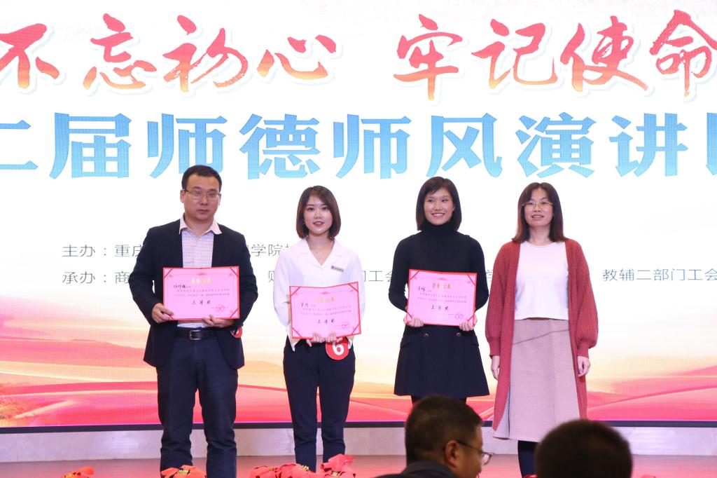 2019年10月23日12点30分,重庆工商大学融智学院“不忘初心、牢记使命”第二届教职工师德师风演讲比赛在学术报告厅拉开帷幕。党委书记丁广龙、常务副校长吴华安等校领导班子出席了此次活动。本次大赛由学校工会主办,商务学院部门工会、财富管理学院部门工会、管理工程学院部门工会、教辅二部门工会共同承办。来自不同工会的15名教职工以饱满的热情、充实的内容和生动的语言为在座的观众呈现出了一台精彩的演讲。