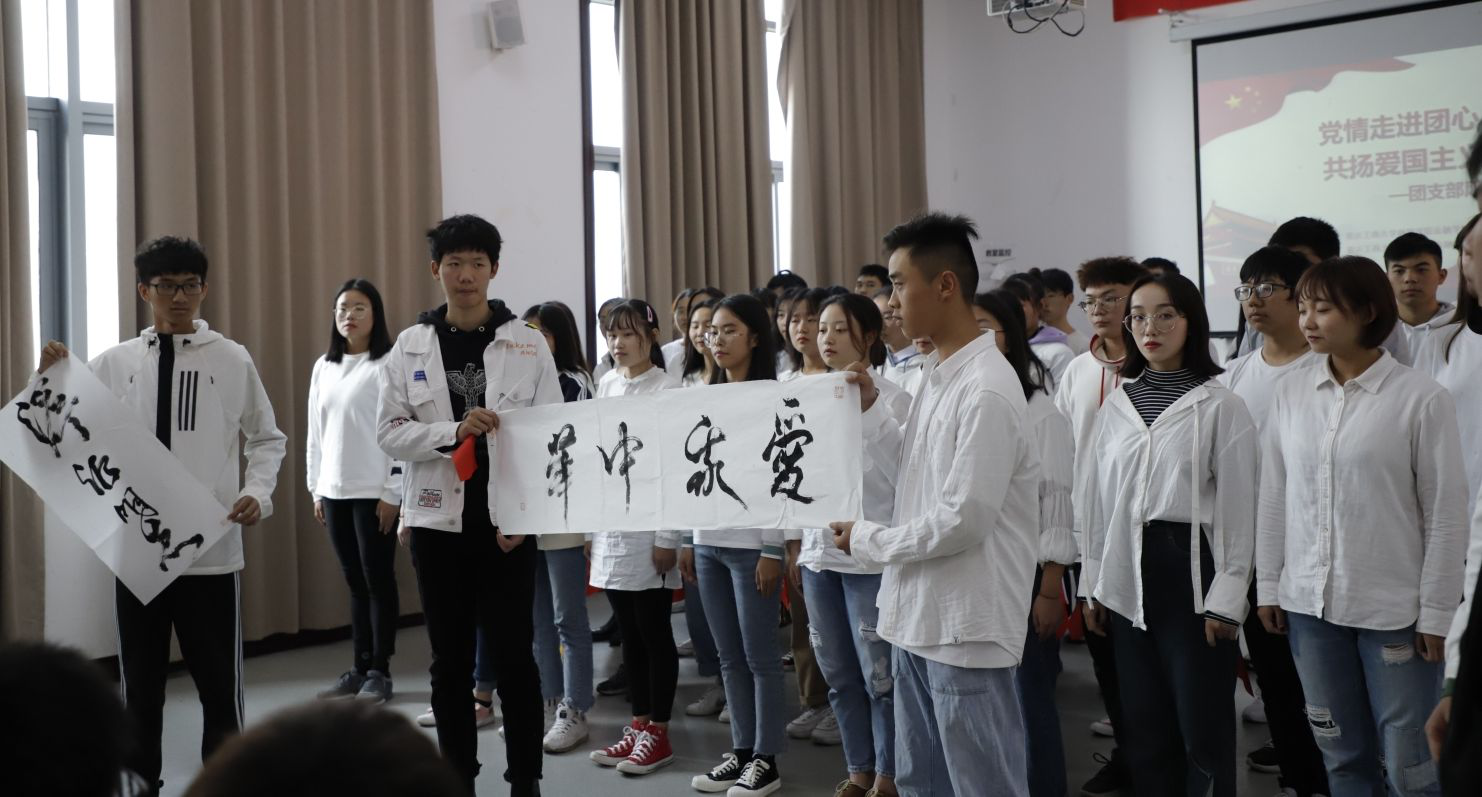 比赛现场,2019级金融一班团支部以合唱、朗诵形式表现《我的中国心》,展现出他们铁骨铮铮的男儿气概以及柔情似水的少女风采,一声声整齐的呐喊,彰显了他们的爱国热情与青春本色。2019级金融三班团支部以书画、朗诵形式相结合呈现《我爱你中国》和《我的中国心》,一笔一画中,举手投足间,饱含他们浓浓的爱国热情,也展现出新时代青年大学生的风采。纵有千古,横有八荒;前途似海,来日方长。金融学院2019级团支部学子用形式多样的艺术风格演绎了一曲曲红色经典,用青春之姿和青春之歌,用铿锵有力且声情并茂的朗诵,用行云流水般的书法,表达赤诚的爱国之情,彰显了当代青年大学生蓬勃的青春力量。