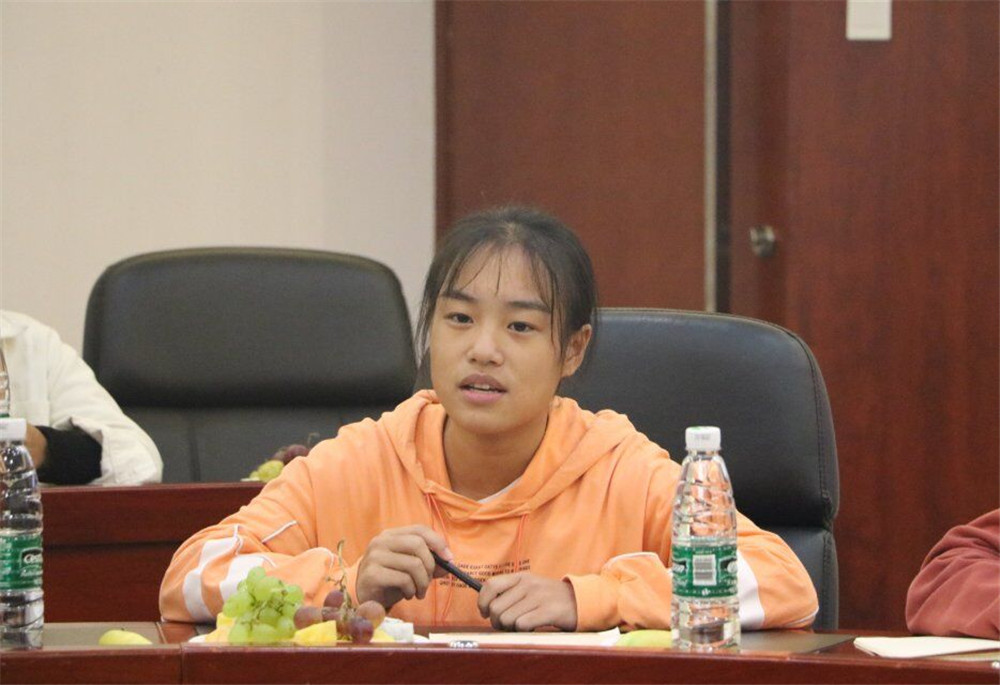 唐处长介绍了来自各个部门的领导。学生代表随后进行了自我介绍。交流会开始后,同学们分别对我校的寝室、图书馆、食堂、体育设施、场地等各个方面提出了疑问与看法。