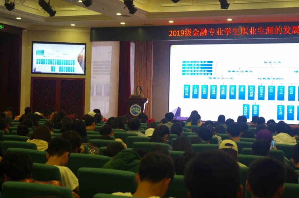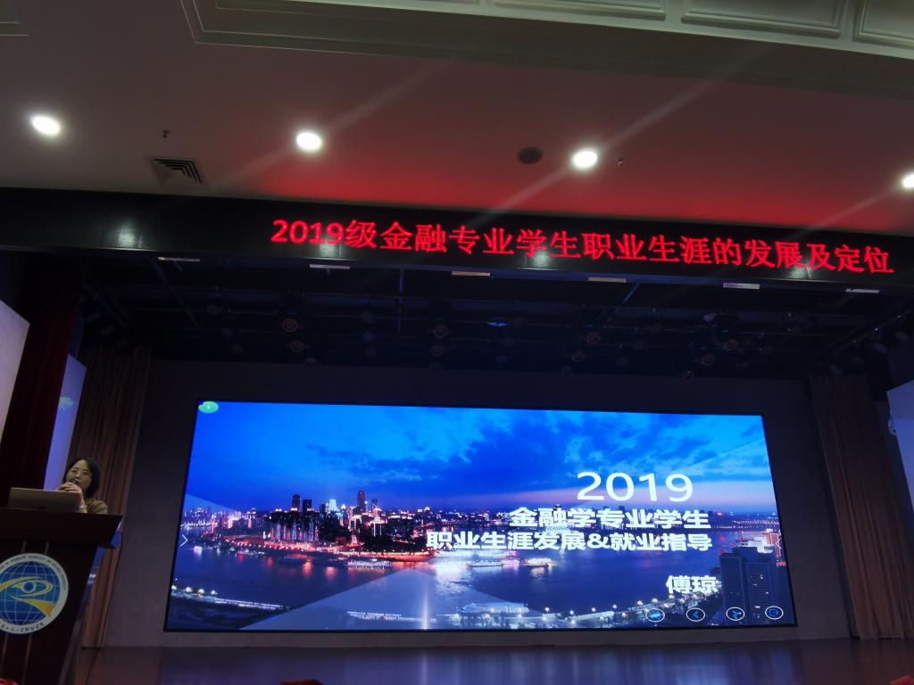为引导2019级金融大类全体新生更好地适应大学生活,了解金融行业定位,尽早确立大学生涯规划和职业生涯规划。2019年10月31日晚,重庆工商大学融智学院金融学院邀请资深金融界人士、联讯证券重庆分公司总经理助理傅琼女士在学术报告厅开展了《金融专业学生职业生涯发展及定位》专题讲座。场内座无虚席,金融学院副院长贺晗、党总支副书记陈萍、2019级全体辅导员和2019级金融学类全体学生听取了此次讲座。