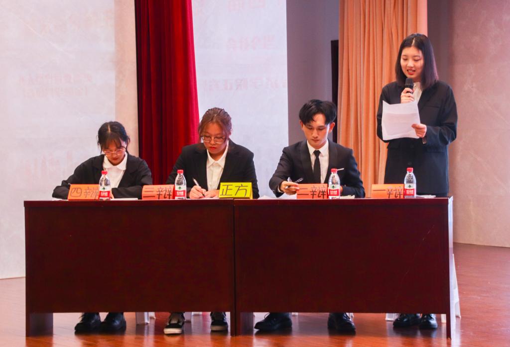 决赛之战,一触即发。11月5日中午12:20,由校团委主办的第十四届“思在杯”新生辩论赛决赛暨颁奖典礼在学术报告厅顺利举行。出席本次比赛的嘉宾有金融学院党总支副书记陈萍、经济学院党总支副书记乐晓勇、团委兼职副书记、经济学院团总支书记夏文瑞和金融学院团总支书记于成江,评委有学生处处长唐川川、党群工作部夏治禹、经济学院专职辅导员陈璐、校团委郑旺和第十四届校辩论队队长梅嘉轩。近500名师生观看了本次辩论赛。