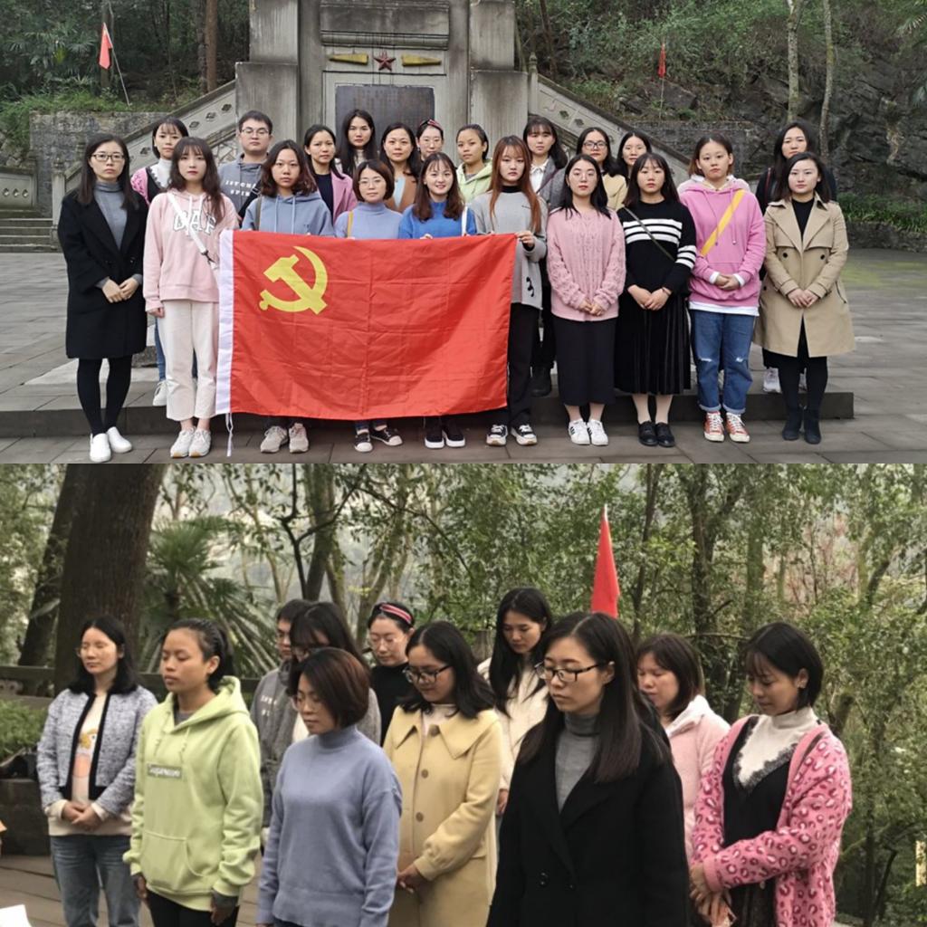 当日下午,全体成员抵达陵园,怀着对革命先烈崇敬之情,在陵园正气亭回顾了中国人民解放军第二野战军12军35师103团在南温泉战斗中浴血奋战的光辉历史和先辈英烈们“捐躯赴国难”的英勇事迹。接着,党员同志们排着整齐的队伍,肃立在革命烈士纪念碑前,教师党支部书记吴玉梅同志致辞后,全体党员默哀,表达对先烈的敬重与哀思。之后,全体党员在姚转花副书记的带领下郑重举起右手庄严宣誓,重温入党宣誓时的庄严承诺。最后,党员师生来到先烈们的墓碑前,依次向烈士们鞠躬致敬,敬献小白花,悼念革命英雄,追思革命先烈们的丰功伟绩