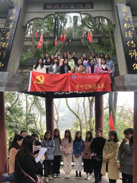 为深学笃用习近平新时代中国特色社会主义思想和党的十九大精神,庆祝中华人民共和国成立70周年,教育和引导会计学院党员同志提高党性修养、坚定理想信念,矢志建功立业,2019年11月8日下午14:00,会计学院15名教师党员和13名学生党员在党总支副书记姚转花的带领下前往南泉烈士陵园,开展了“不忘初心、牢记使命”革命传统教育。