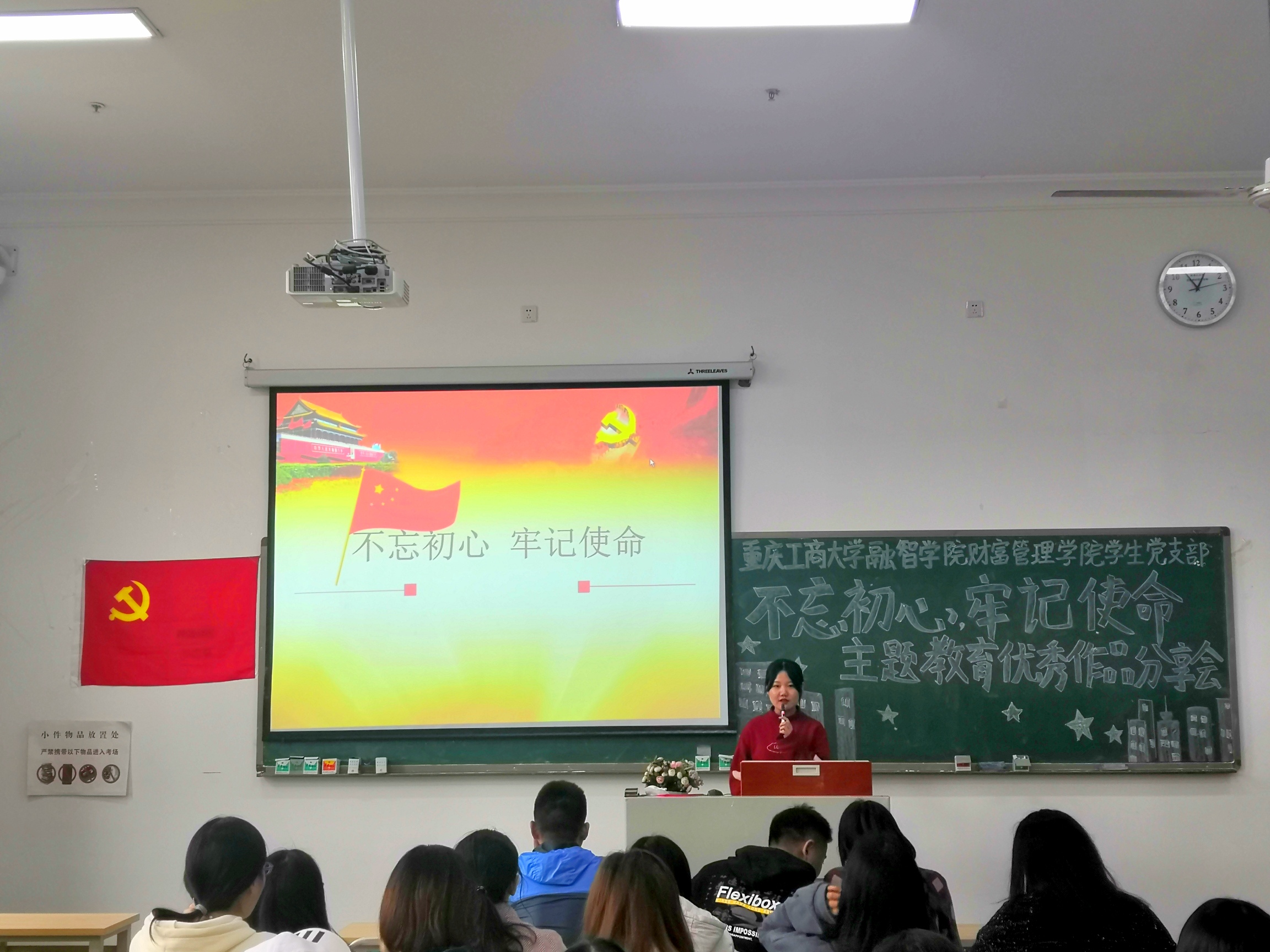 为深入开展“不忘初心、牢记使命”主题教育,财富管理学院学生党支部通过支部书记讲党课、理论研讨集中学习、读原著学原文分享心得等形式,对学生党员进行全面的思想政治教育,并于11月8日中午12:10在1612教室开展2019-2020学年“不忘初心,牢记使命”主题教育优秀作品分享会。出席本次会议的有财富管理学院学生党支部书记左小容,财富管理学院学生党支部组织委员芦丹。财富管理学院学生党员、党员服务站全体工作人员参加了本次会议。