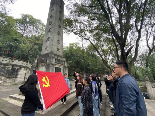 为了进一步推进“不忘初心、牢记使命”主题教育的深入开展,牢固树立广大党员同志的理想信念。2019年11月8日,重庆工商大学融智学院商务学院学生党支部书记徐繁生老师和经济学院学生党支部书记夏文瑞老师带领两个学院的近30名学生党员前往重庆市巴南区南泉革命烈士陵园开展了“不忘初心、牢记使命”主题教育之“缅怀革命先烈,传承红岩精神”活动。
